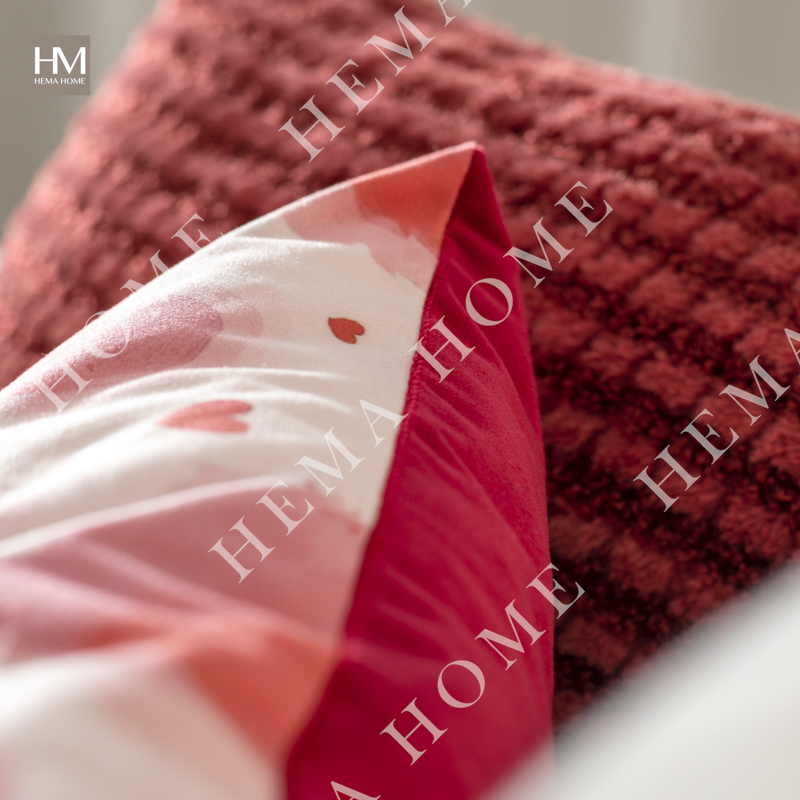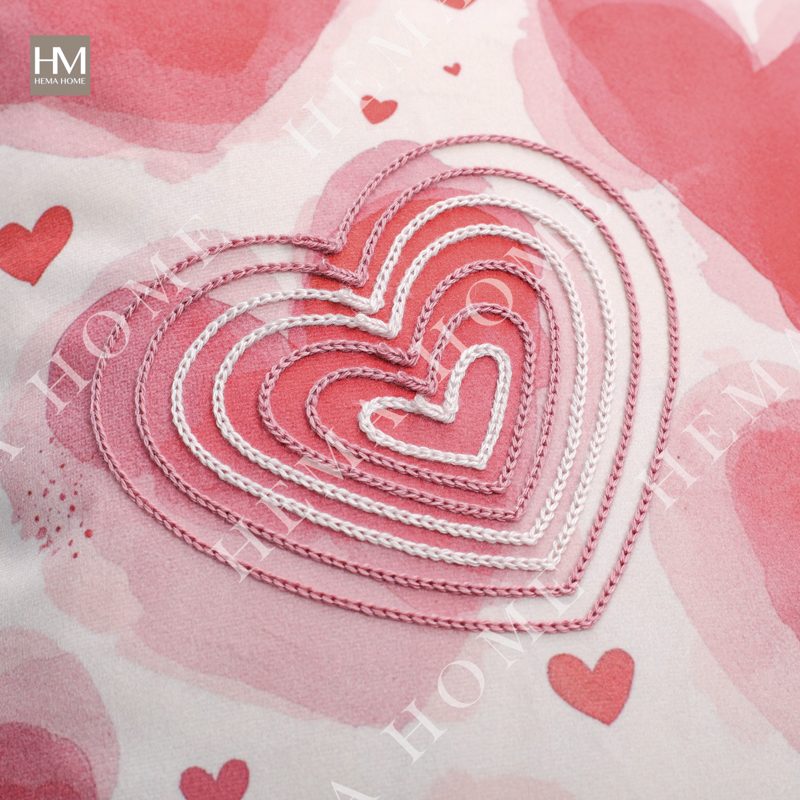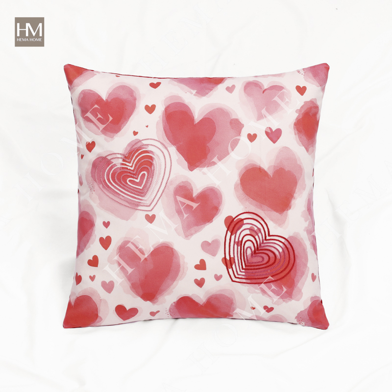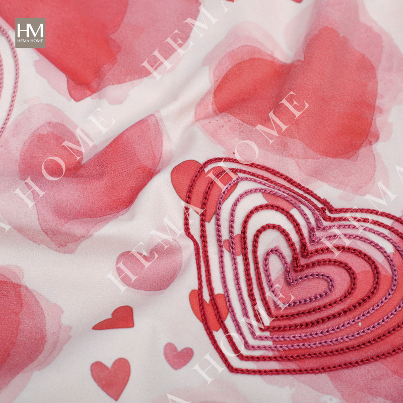 Digital Printed and Embroidered Heart Pattern Velvet Cushion with Velvet Back