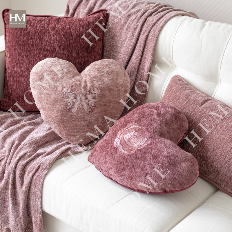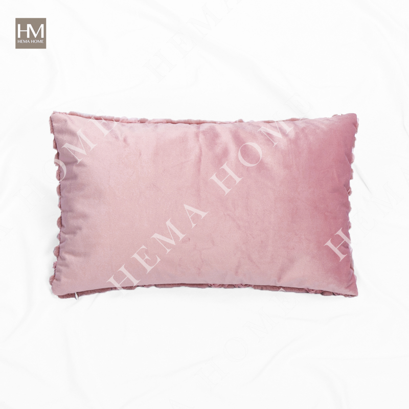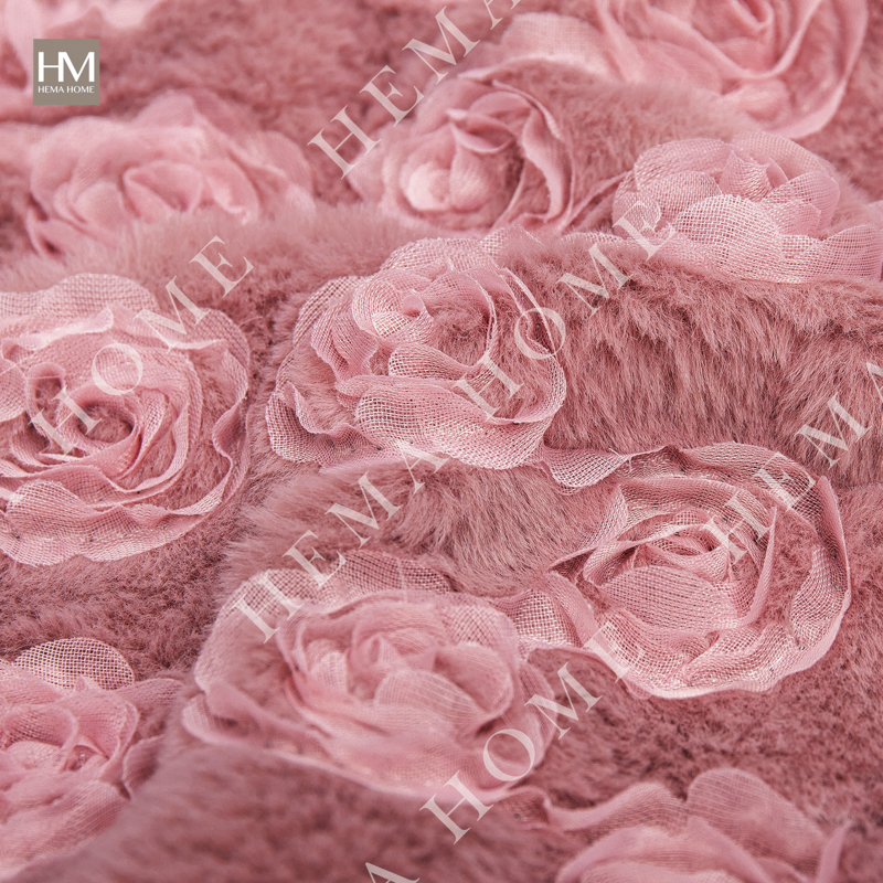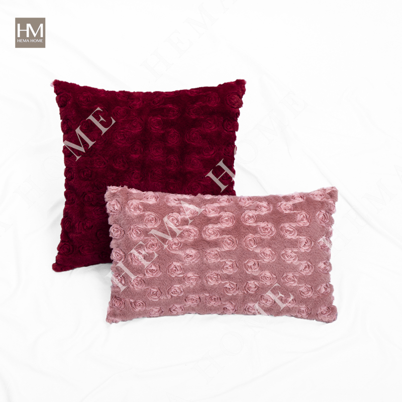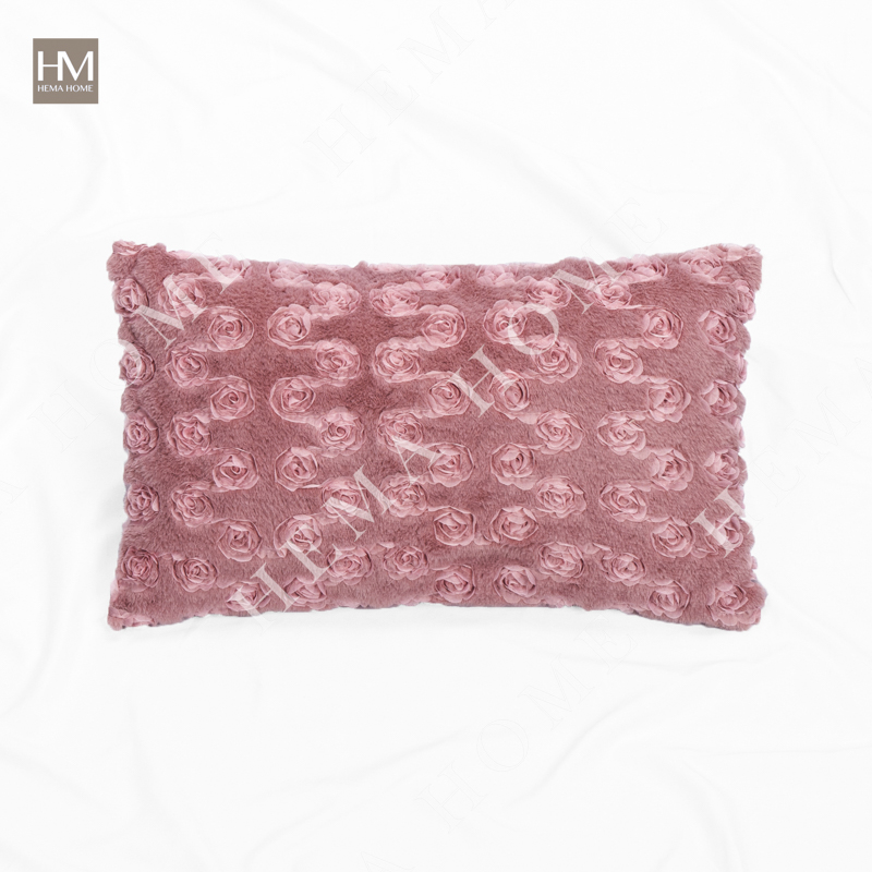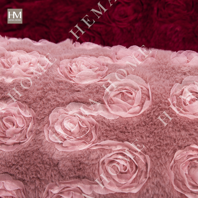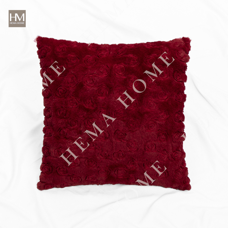 Embed Rose Pattern Faux Rabbit Fur Cushion with Velvet Back.