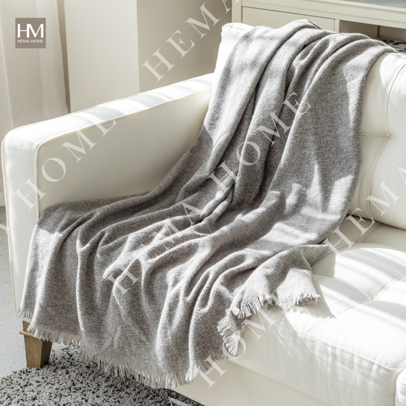 Jacquard Geo-Pattern Acrylic Blanket with Fringes