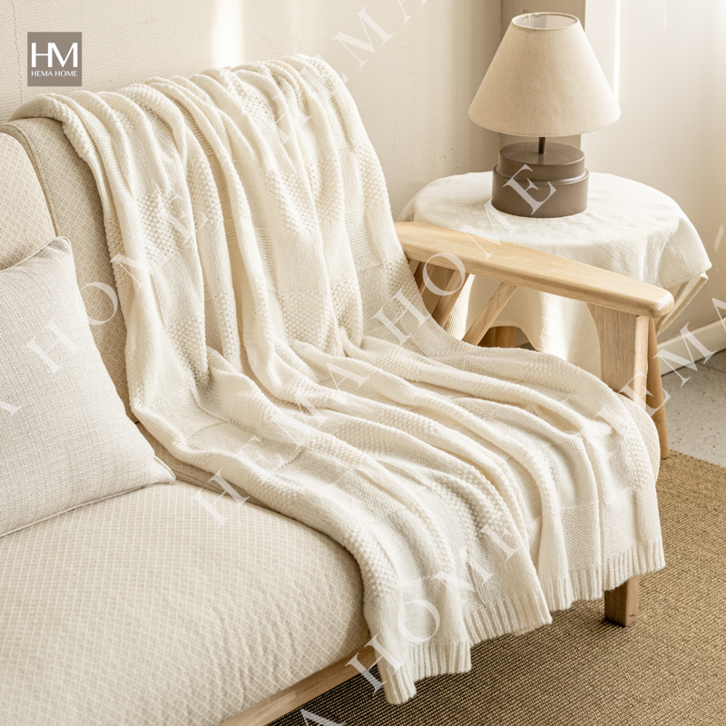 Knitted Plain Cotton Blanket with Shell Shaped Stitching