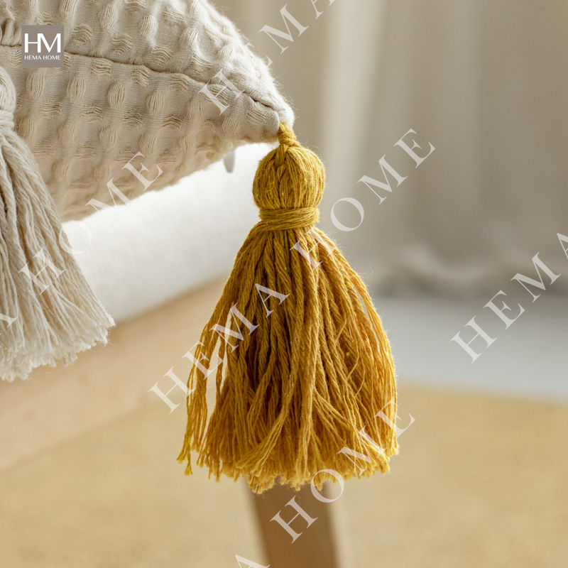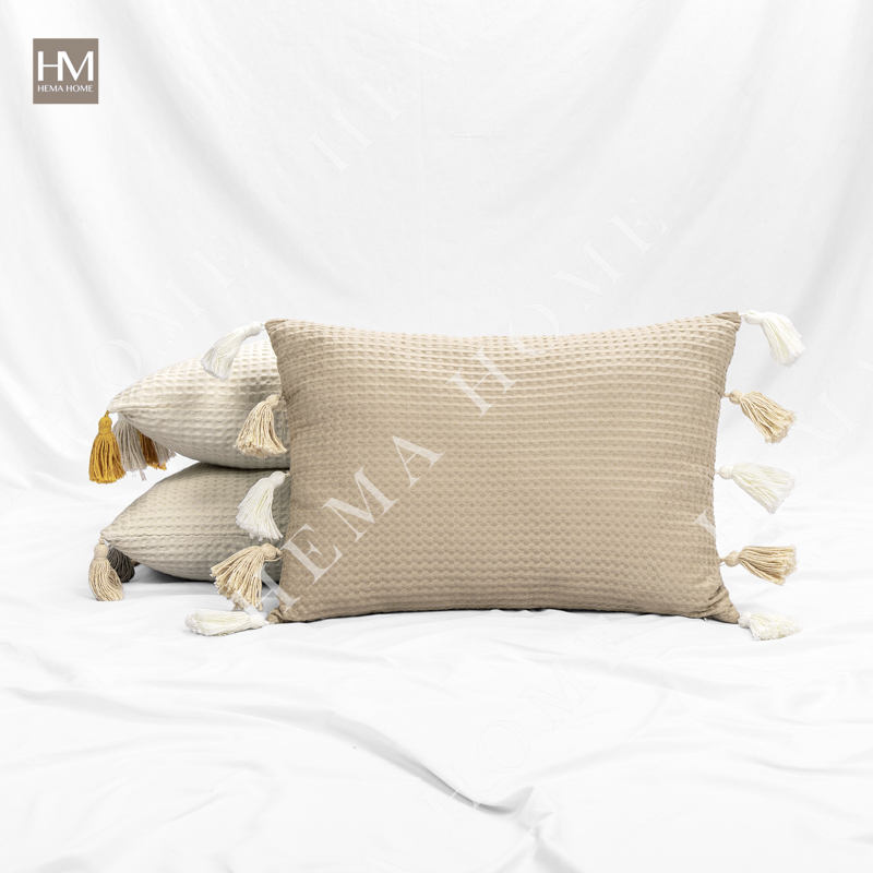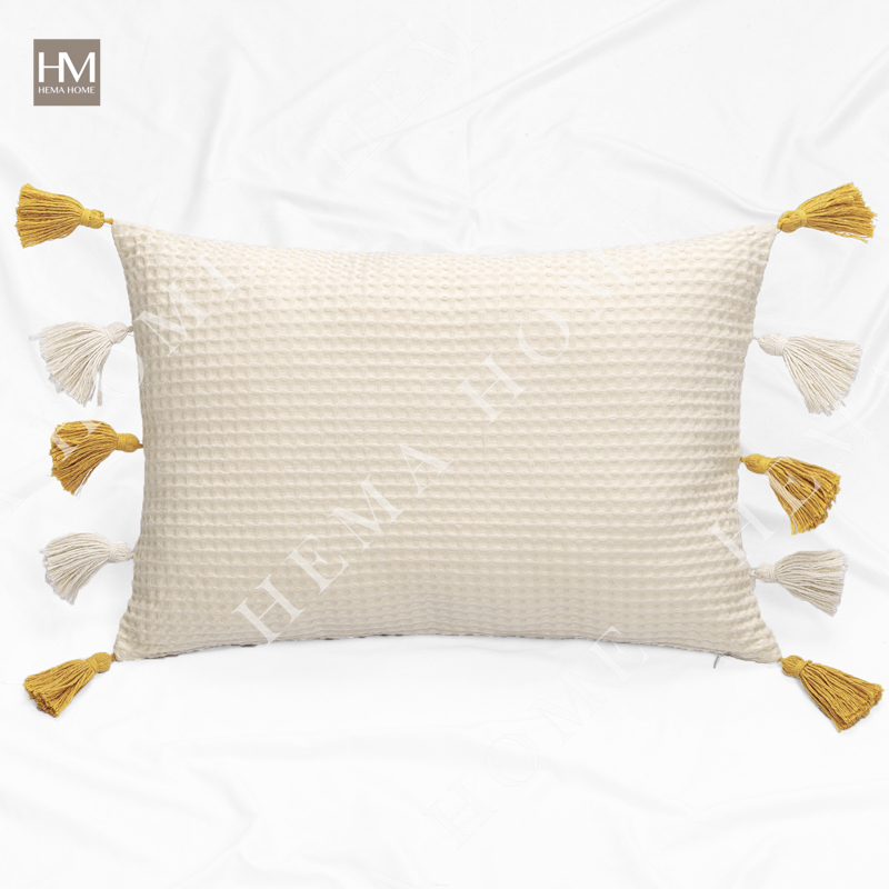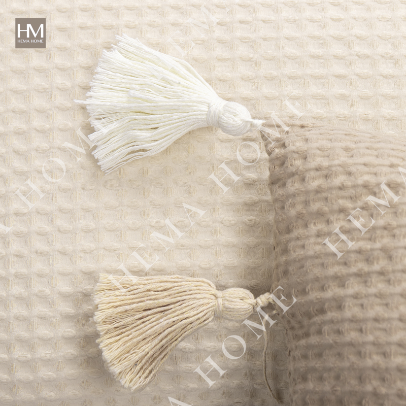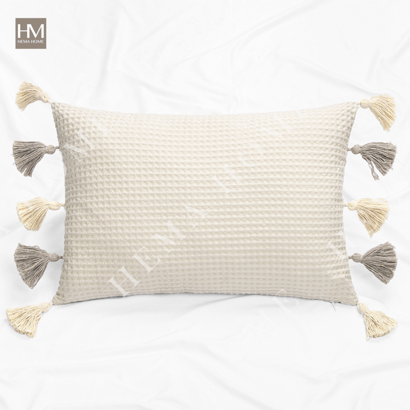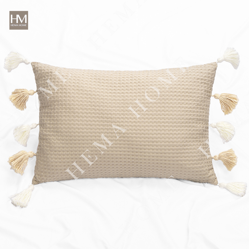 220GSM Waffle Pattern Cotton Cushion with Tassels