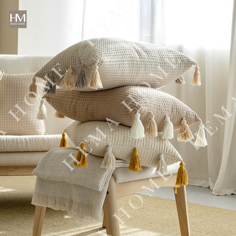 220GSM Waffle Pattern Cotton Cushion with Tassels
