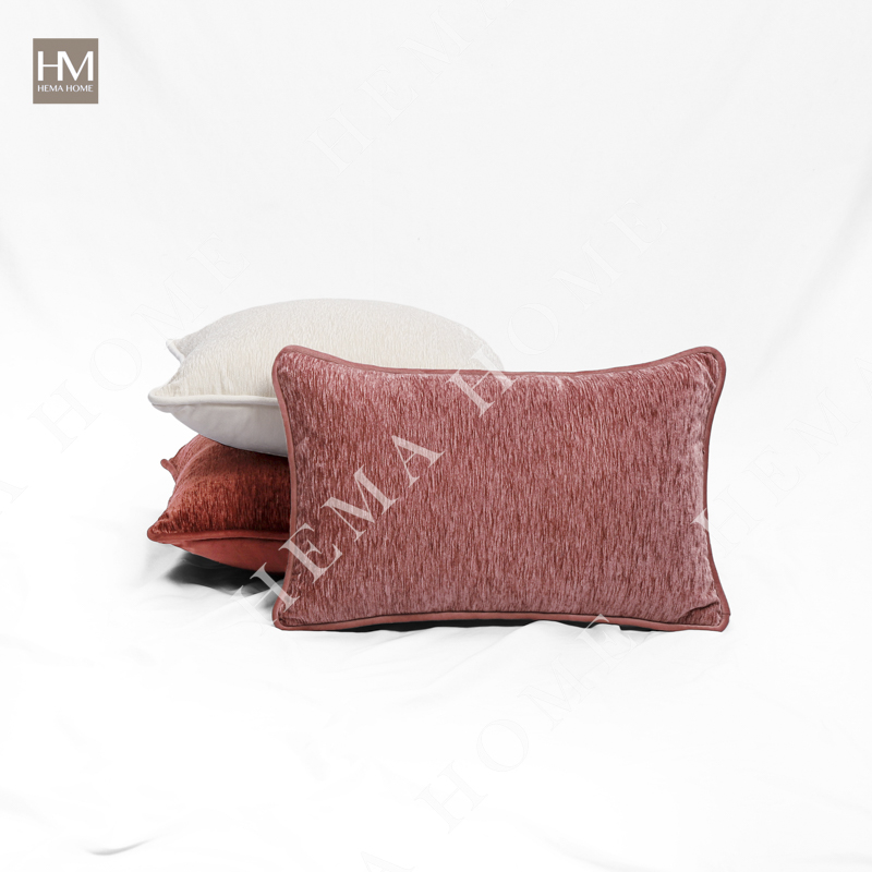 320GSM Solid Chenille Cushion with Piping and Velvet Back