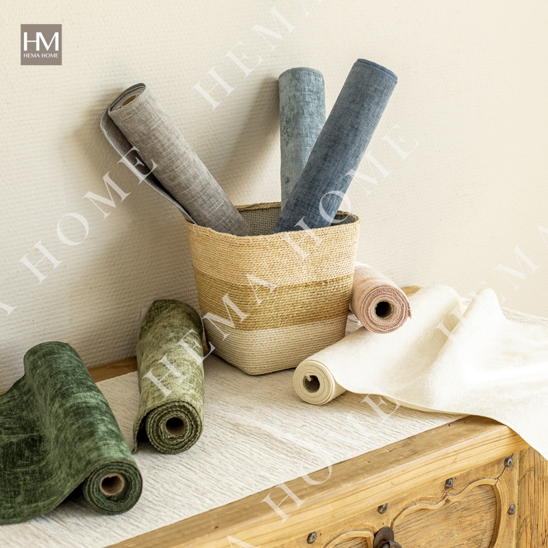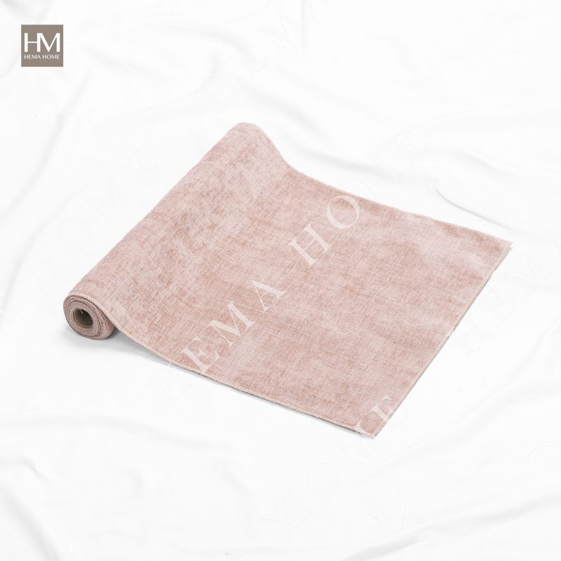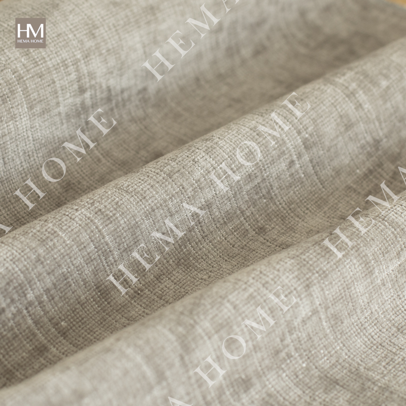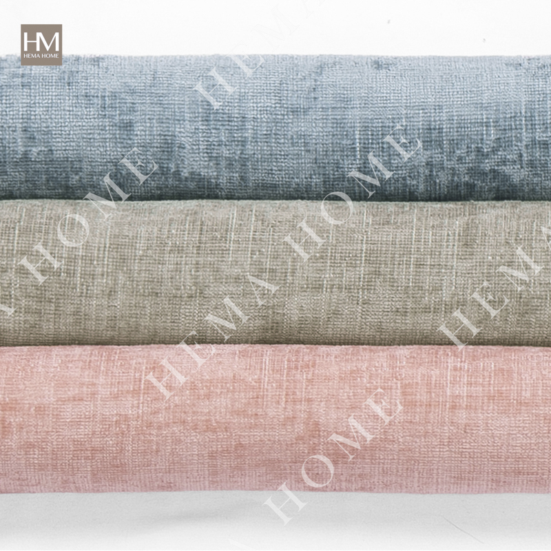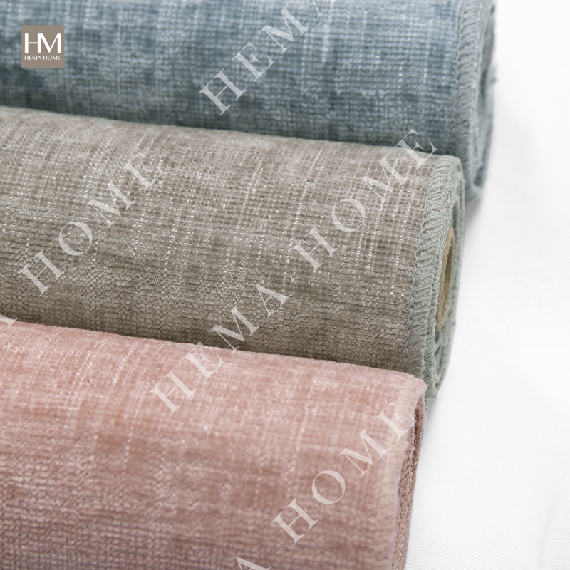 332GSM slubbed chenille fabric rolled with overlocked edges on all four sides.