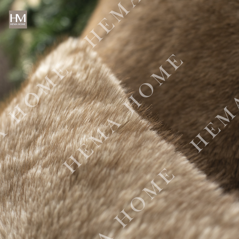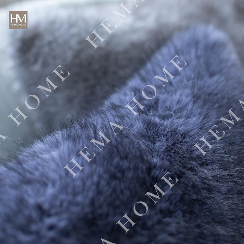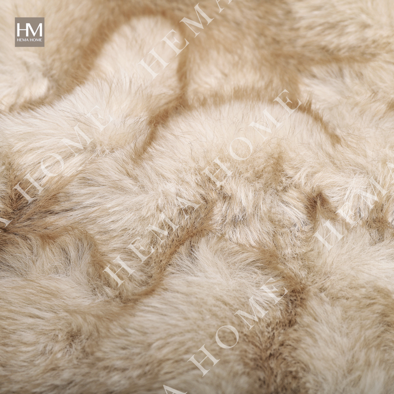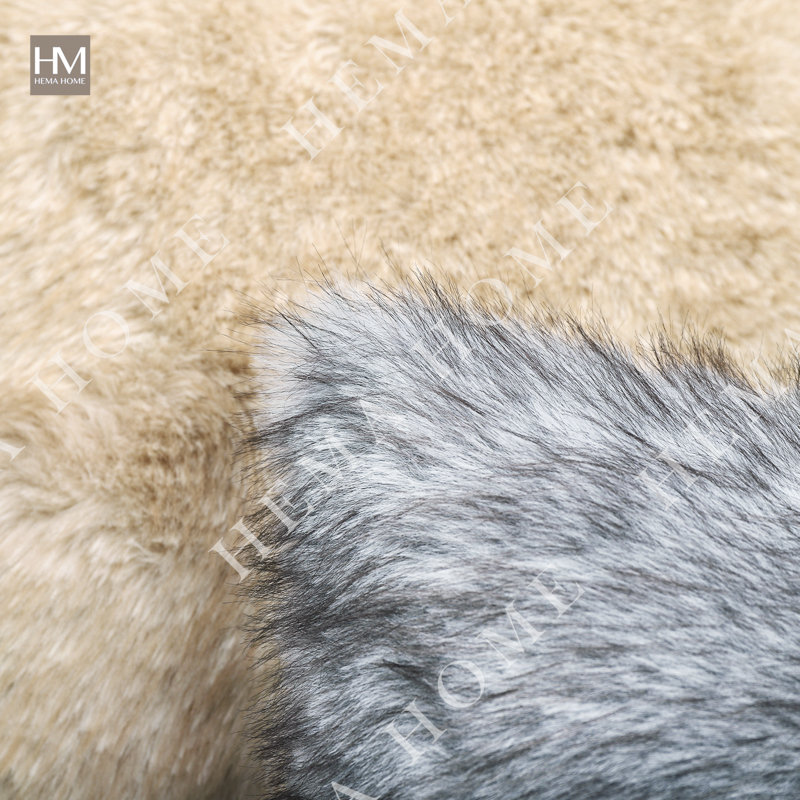 Front side is 556GSM faux fur fabric, back side is solid color velvet fabric.