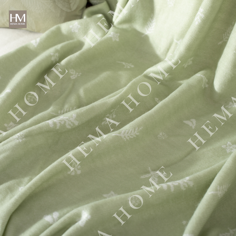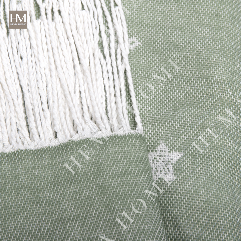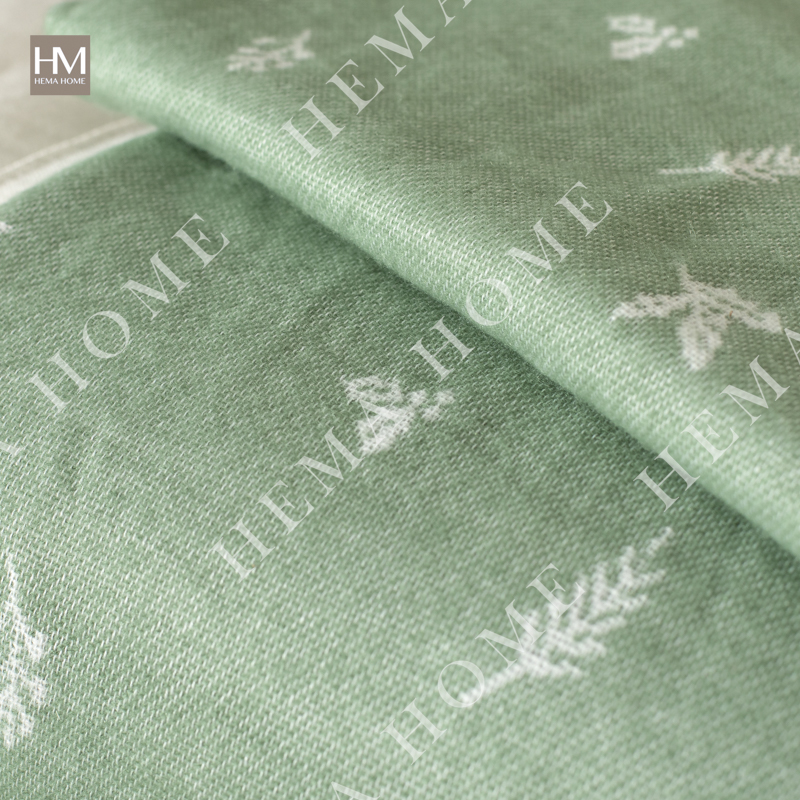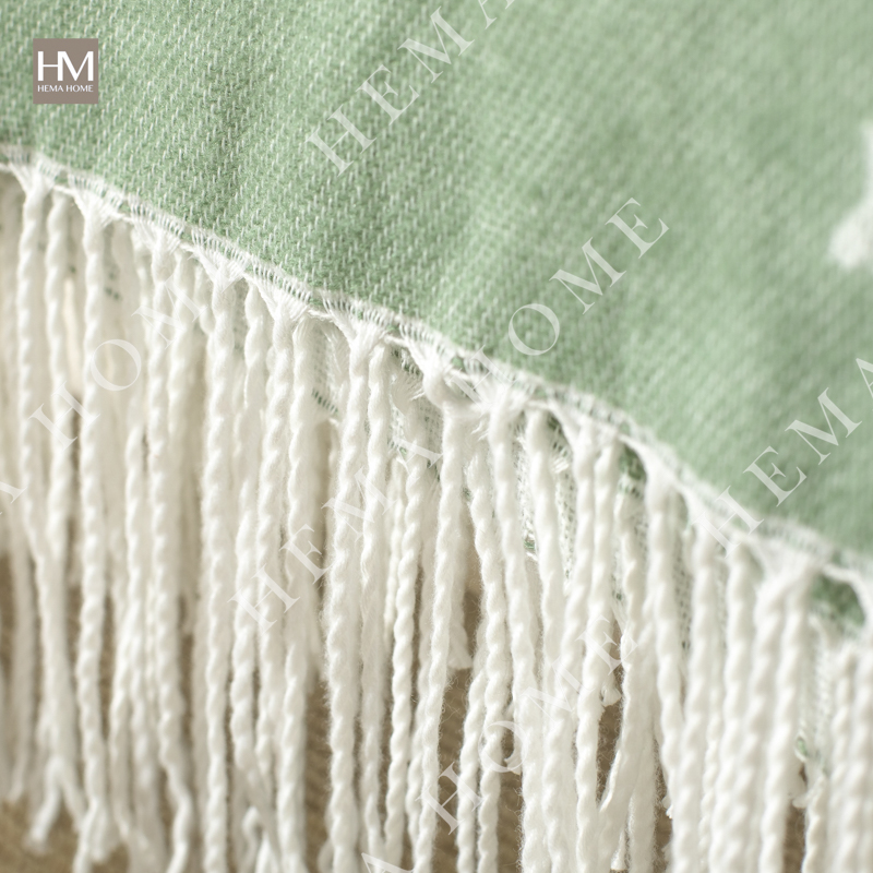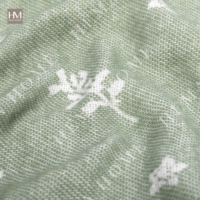 Jacquard Leaves Pattern Polyester Blanket with Fringes