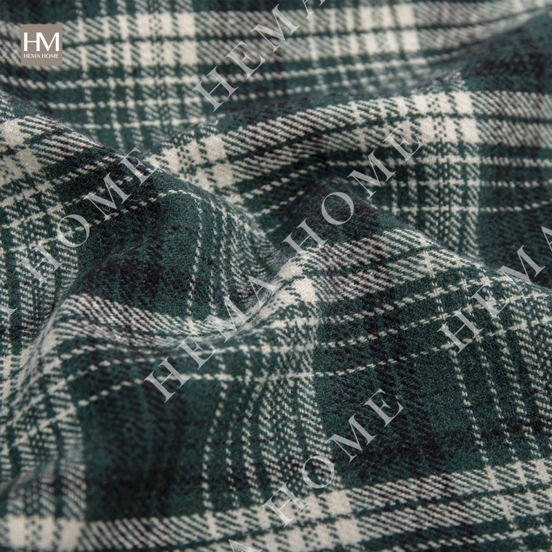 Front side is polyester in checked pattern,back side is velvet fabric in solid color.