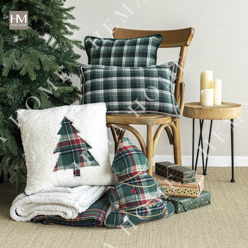 Checked Pattern Polyester Cushion with Flanges