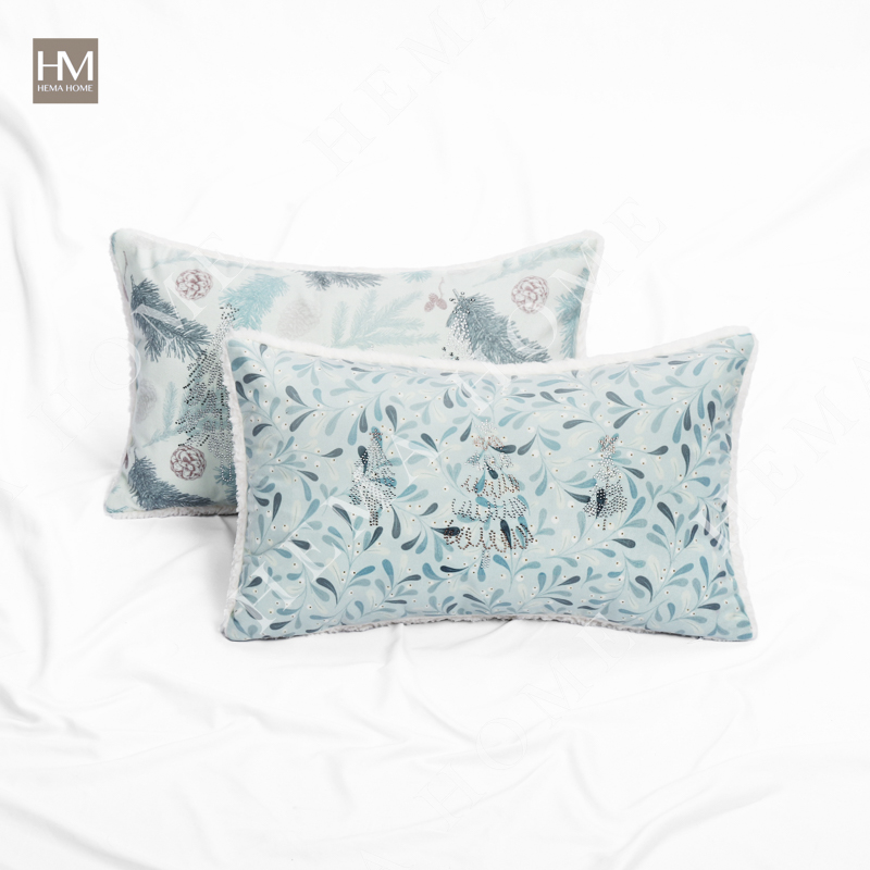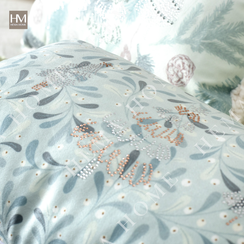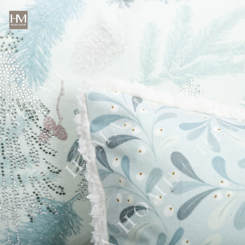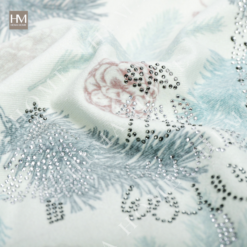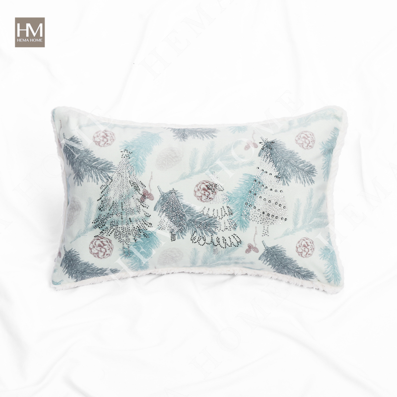 Digital Printed and Rhinestone Embellished Xmas Tree Patterns Velvet Fabric Cushion