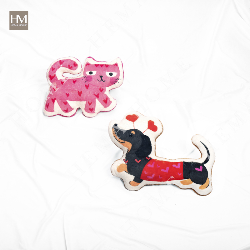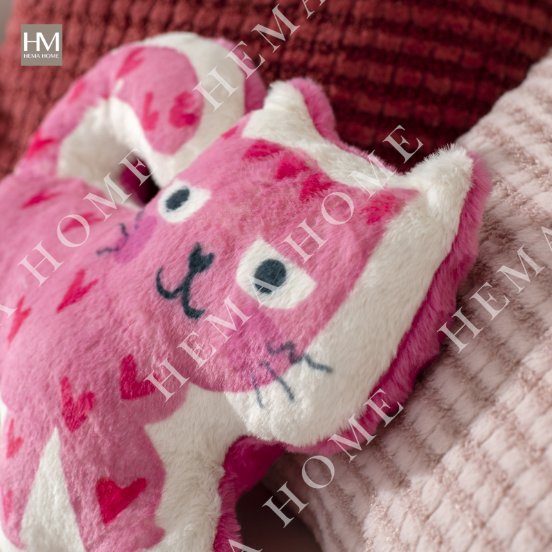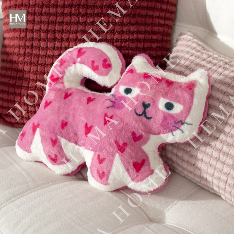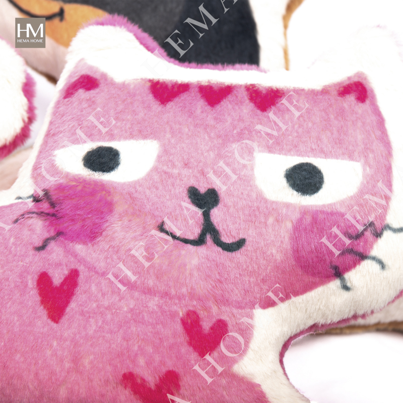 Digital Printed Cat Shaped Faux Rabbit Fur Cushion