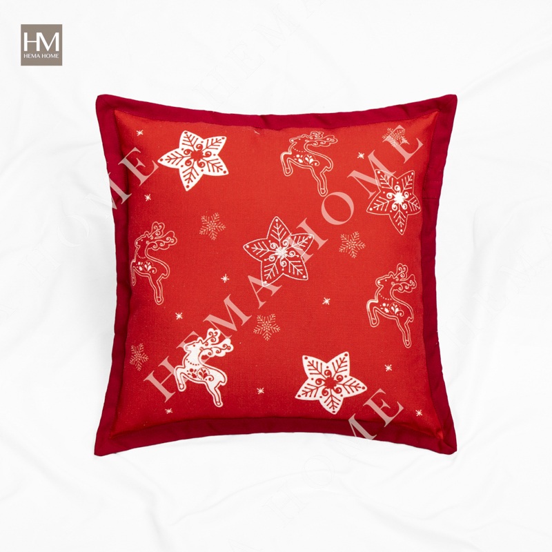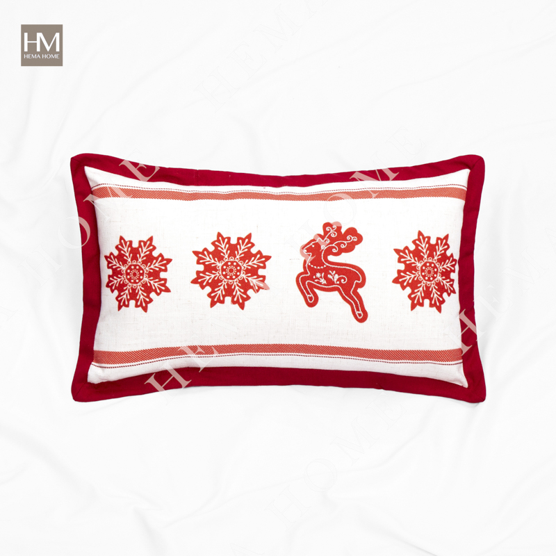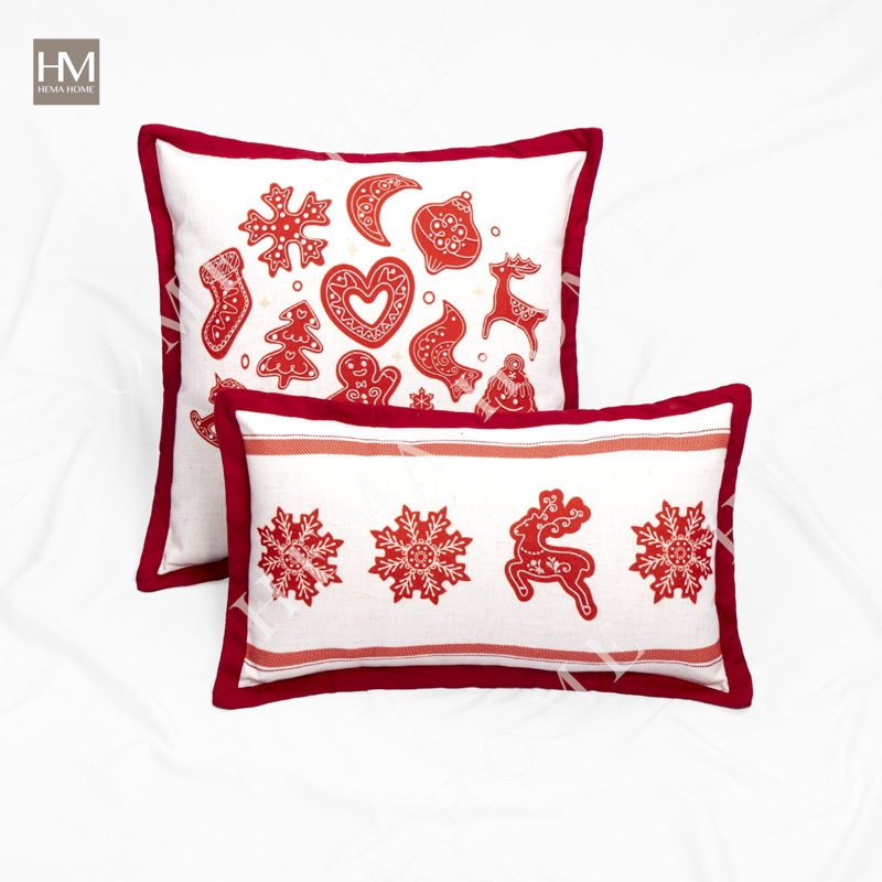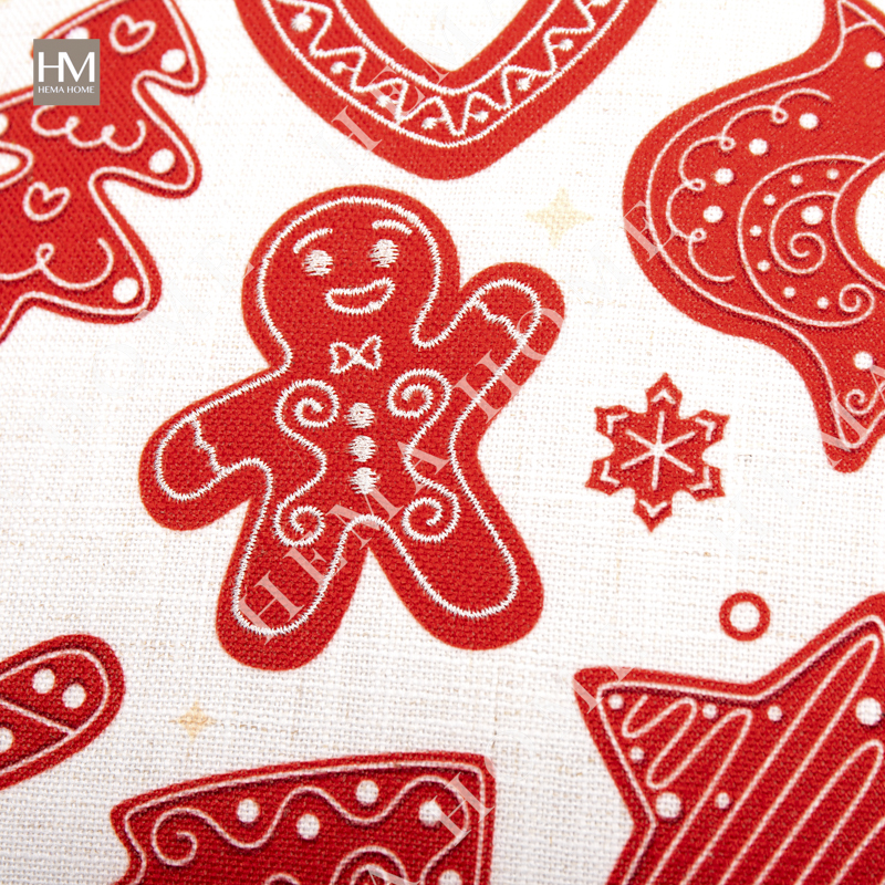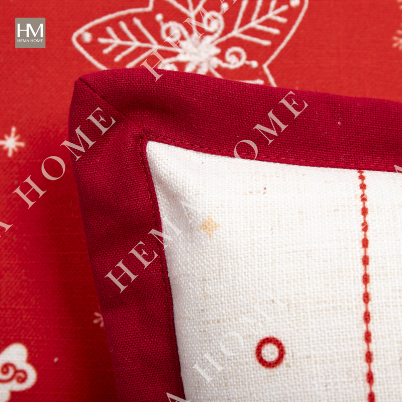 Embroidered and Printed Xmas Pattern Poly-Linen Cushion with Poly-Cotton Back