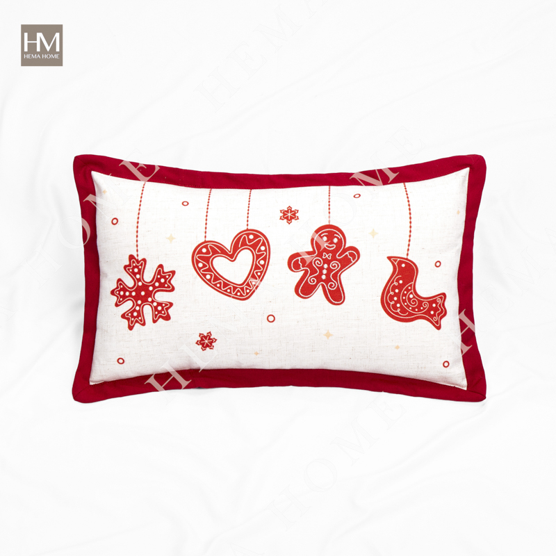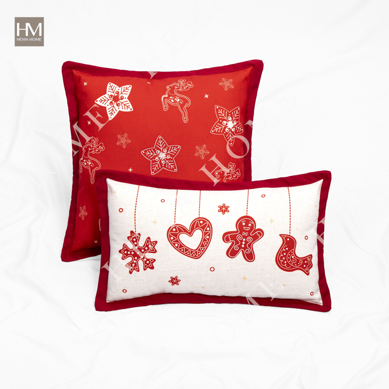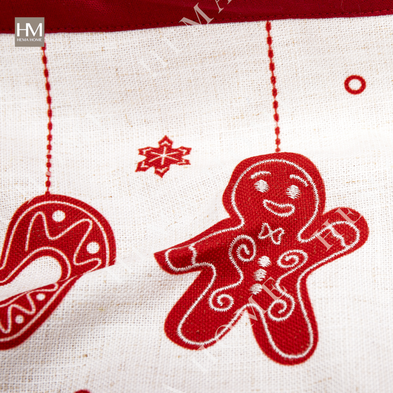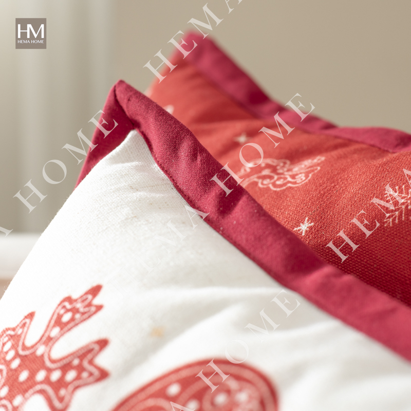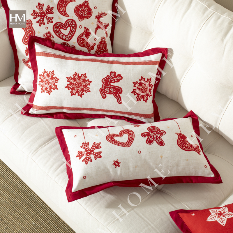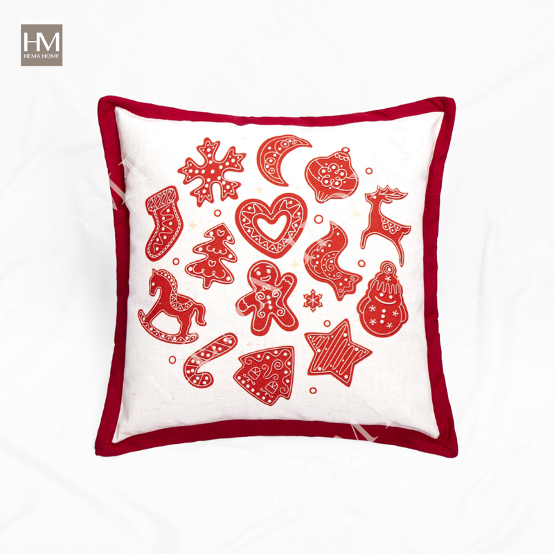Embroidered and Printed Xmas Pattern Poly-Linen Cushion with Poly-Cotton Back