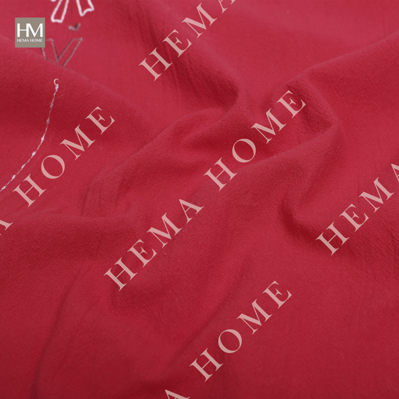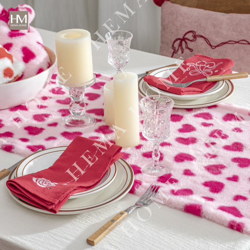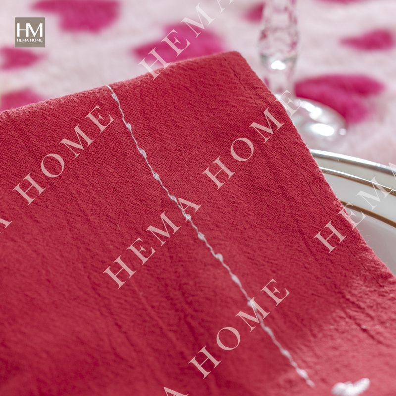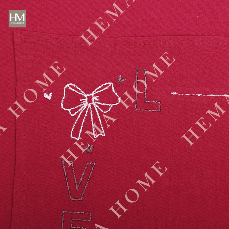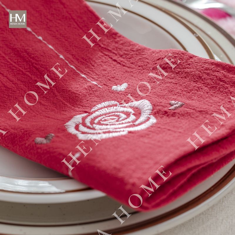 Embroidered cotton napkin with cherry/rose/bowknot pattern, with 0.5cm hemming.