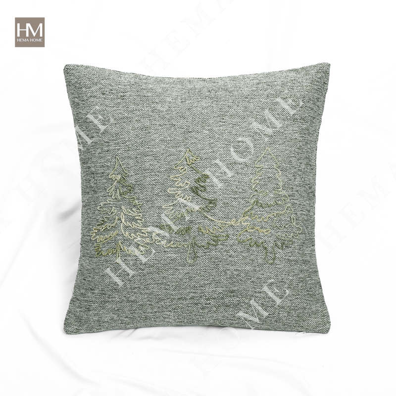Embroidered Christmas Tree Pattern Poly-Linen Fabric Cushion