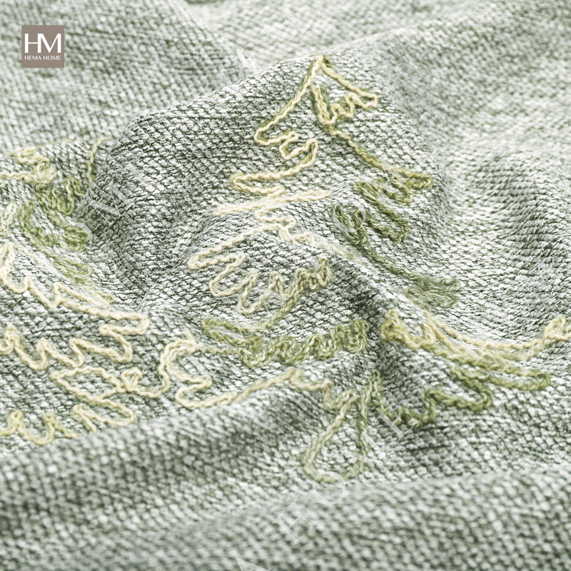Both sides are 270GSM poly-linen fabric, one side with embroidered chritmas tree/leaves.