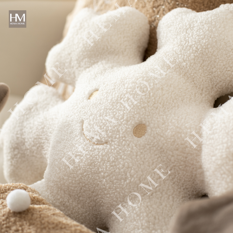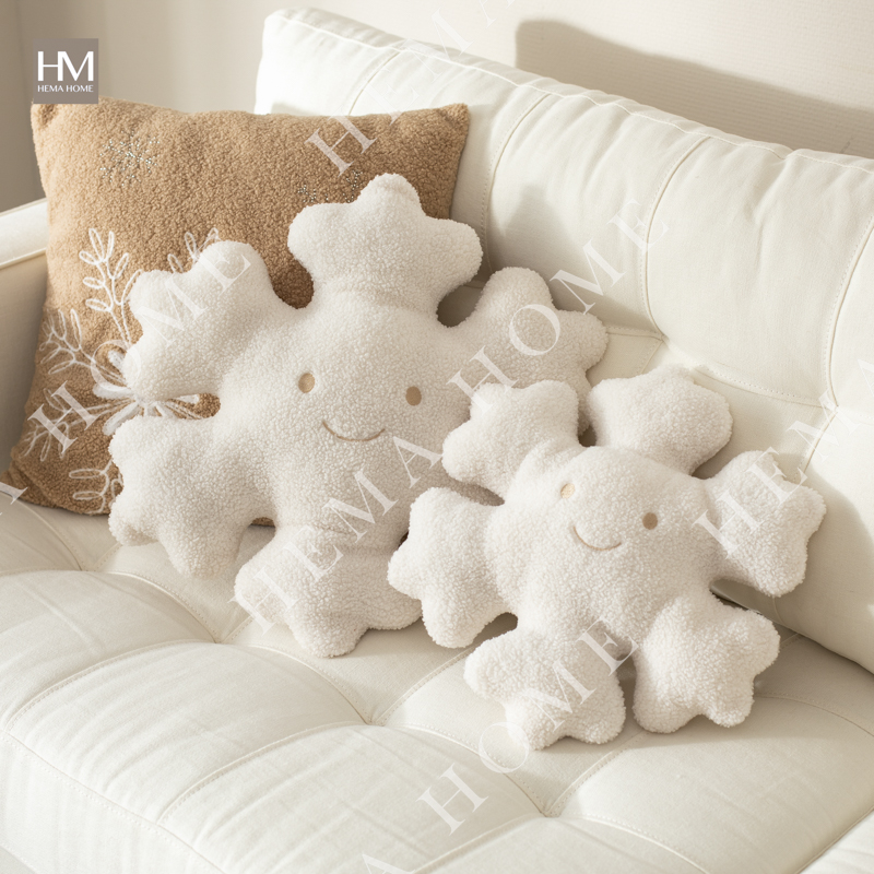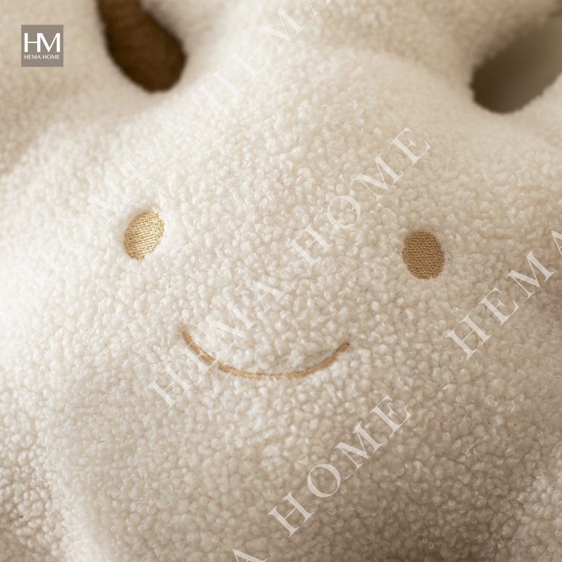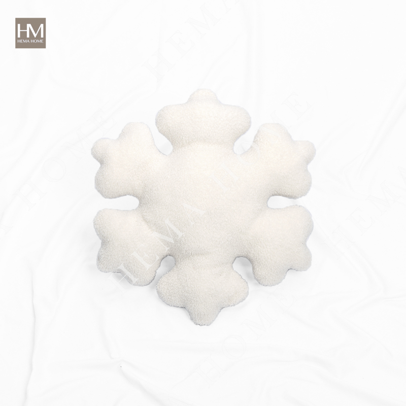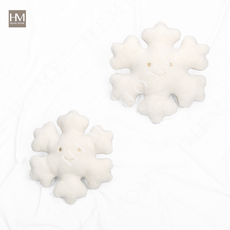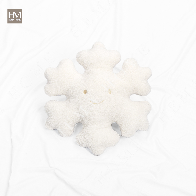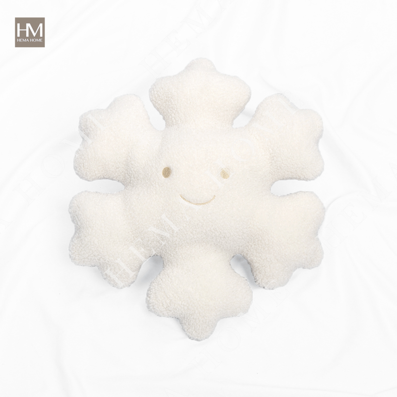 Embroidered Smile Pattern Snowflake Shaped Teddy Fur Cushion