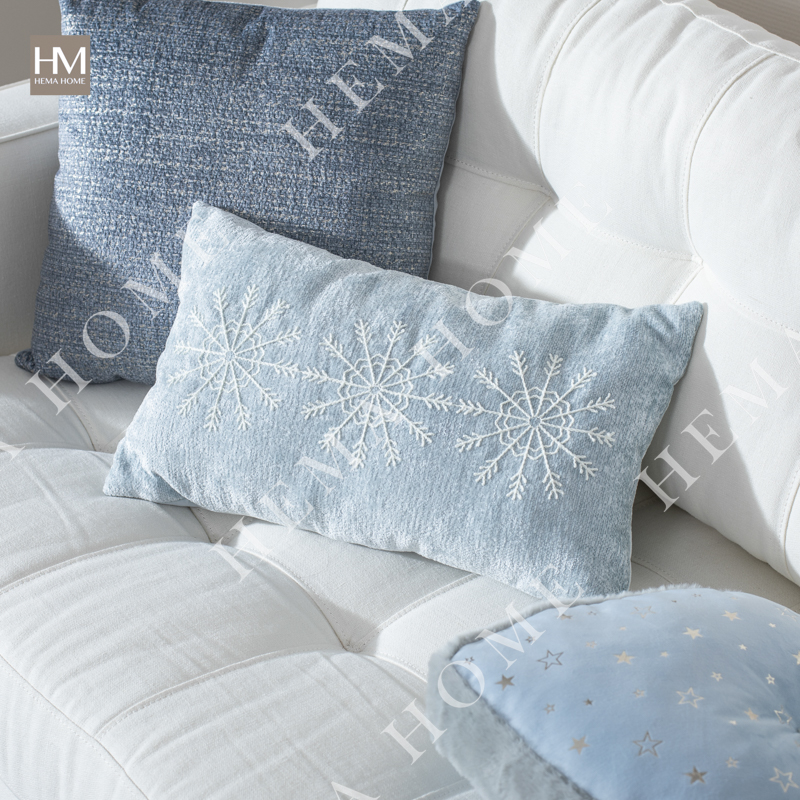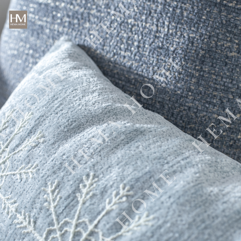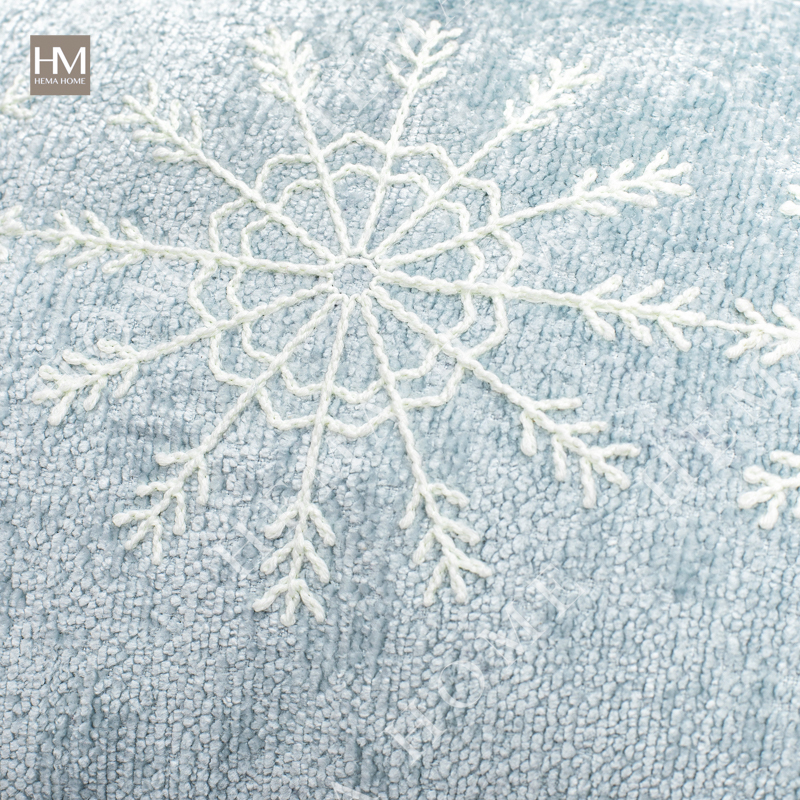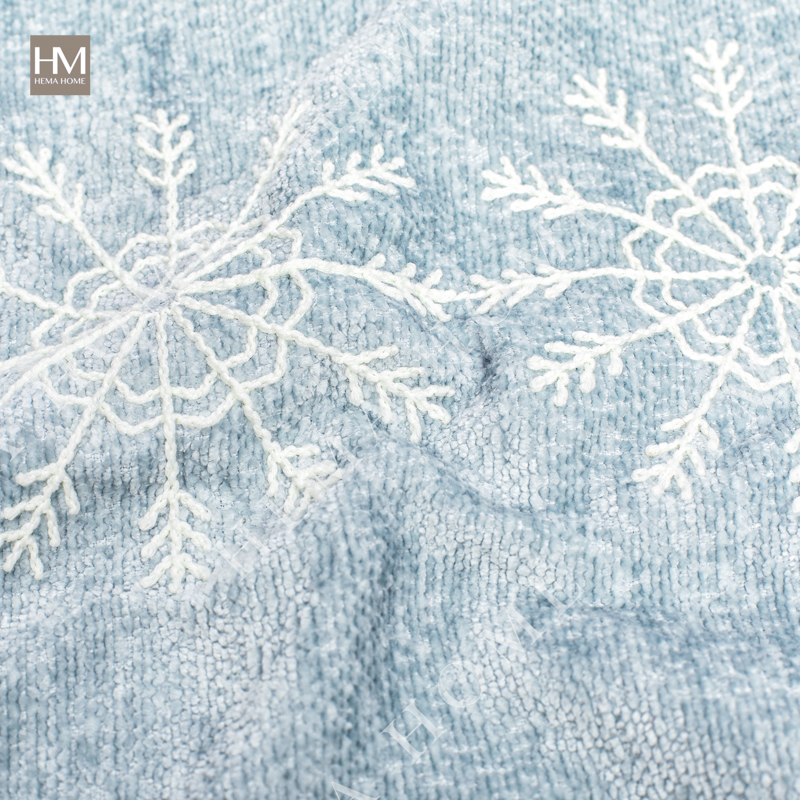 Front side is 345GSMchenille fabric with snowflake embroidery,back side is solid 220GSM velvet fabric.