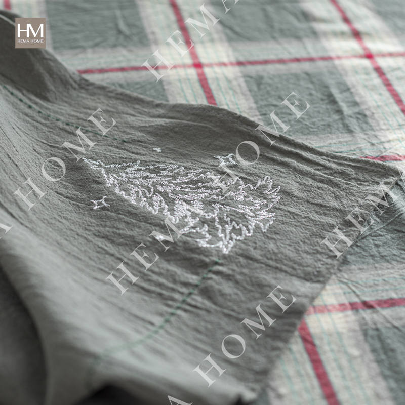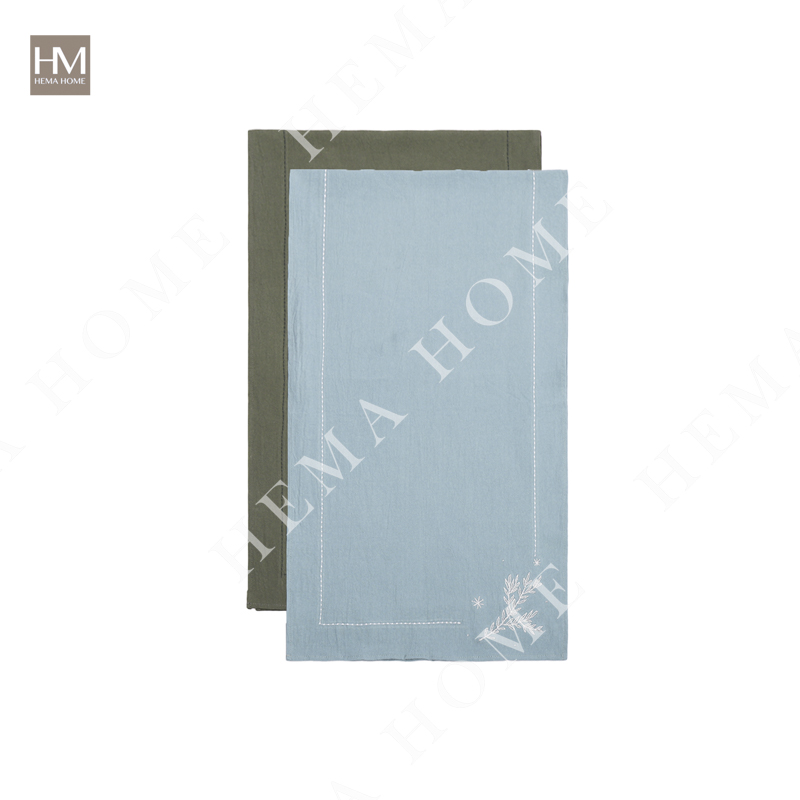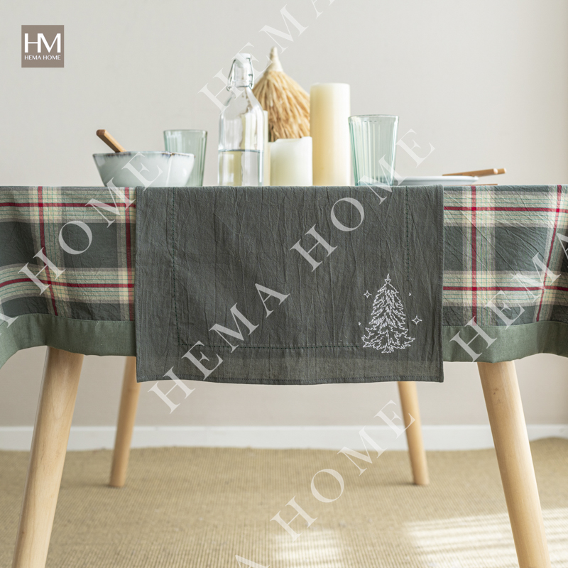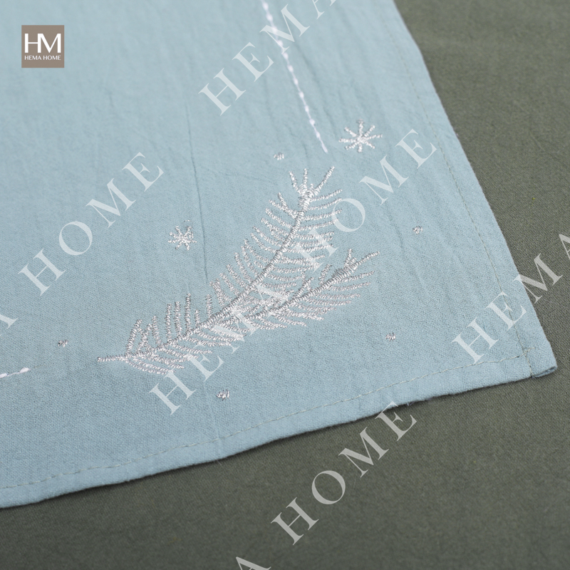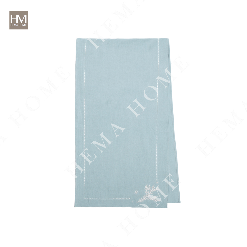 Cotton table runner with embroidery christmas pattern on both sides
