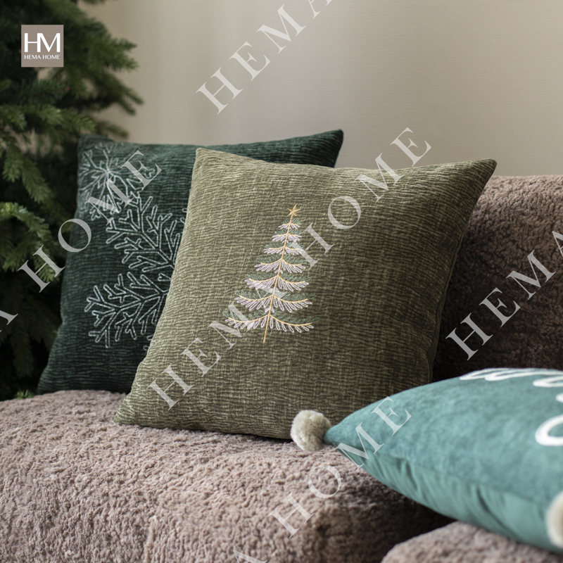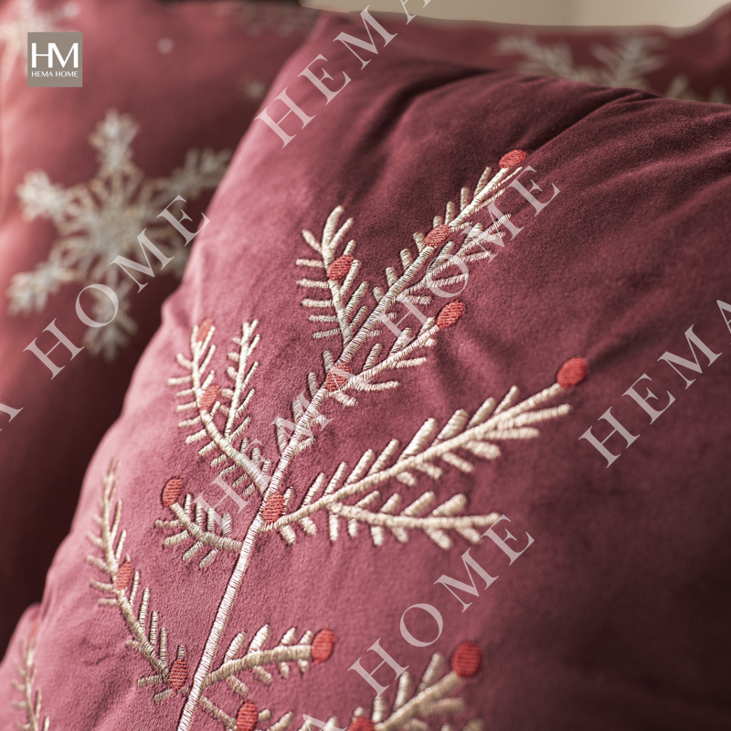 Both sides are 220GSM matte velvet fabric, one side with embroidered leaves/tree/wreath.