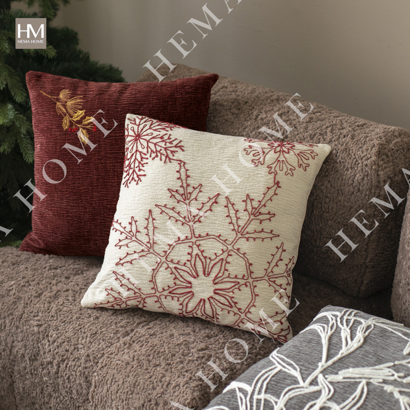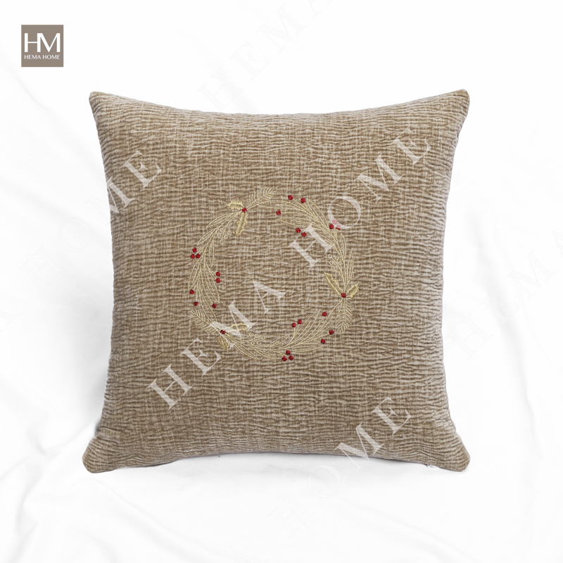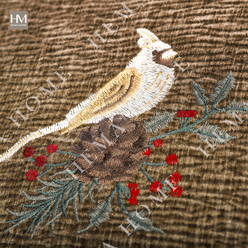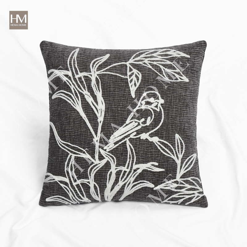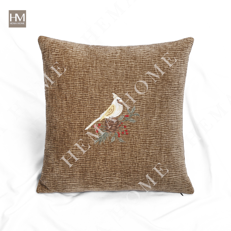 Embroidered Leaves/Wreath/Bird Pattern Chenille Cushion