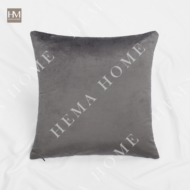 Front side is embroidered polyester fabric, back side is solid velvet fabric, with zipper, with filling.