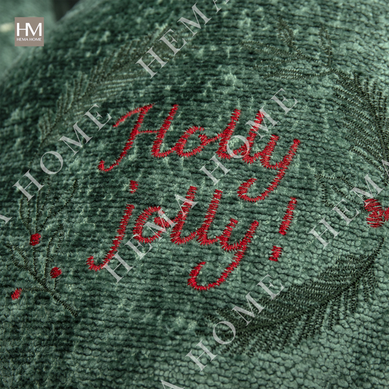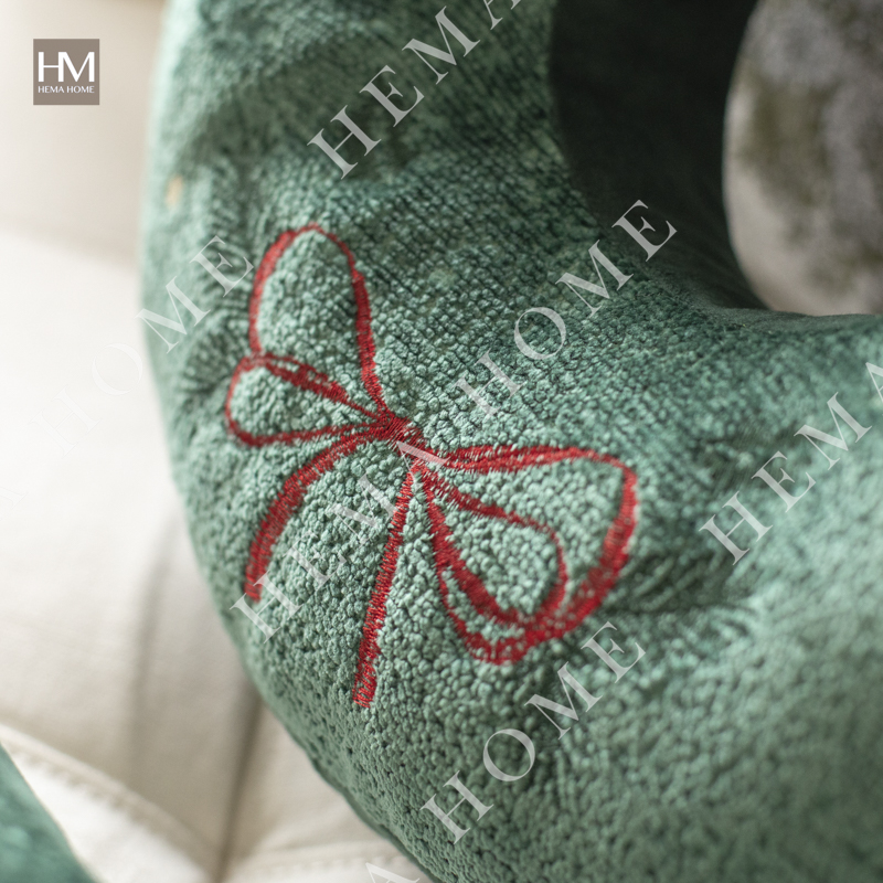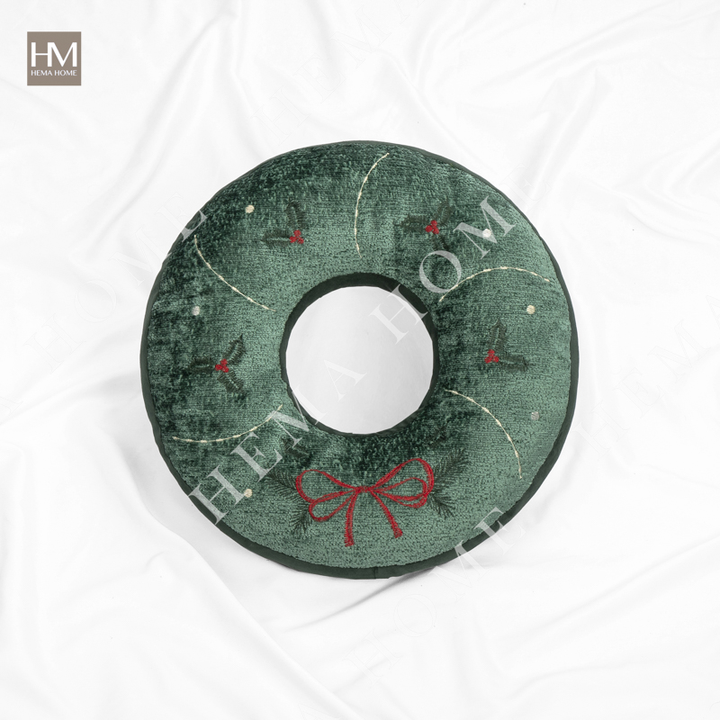 Embroidered Wreath/Xmas Tree Shaped Chenille Cushion