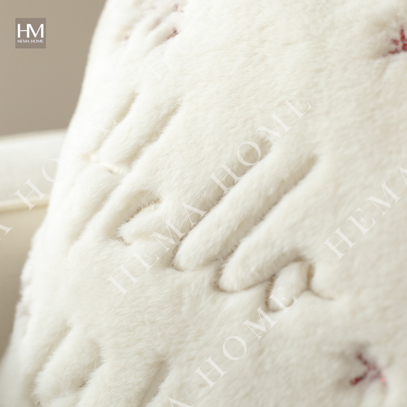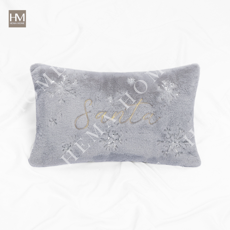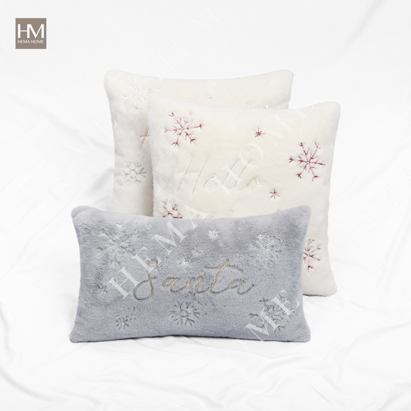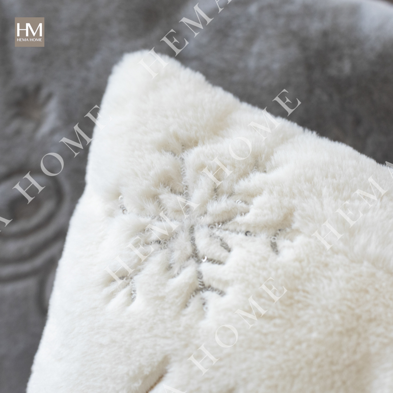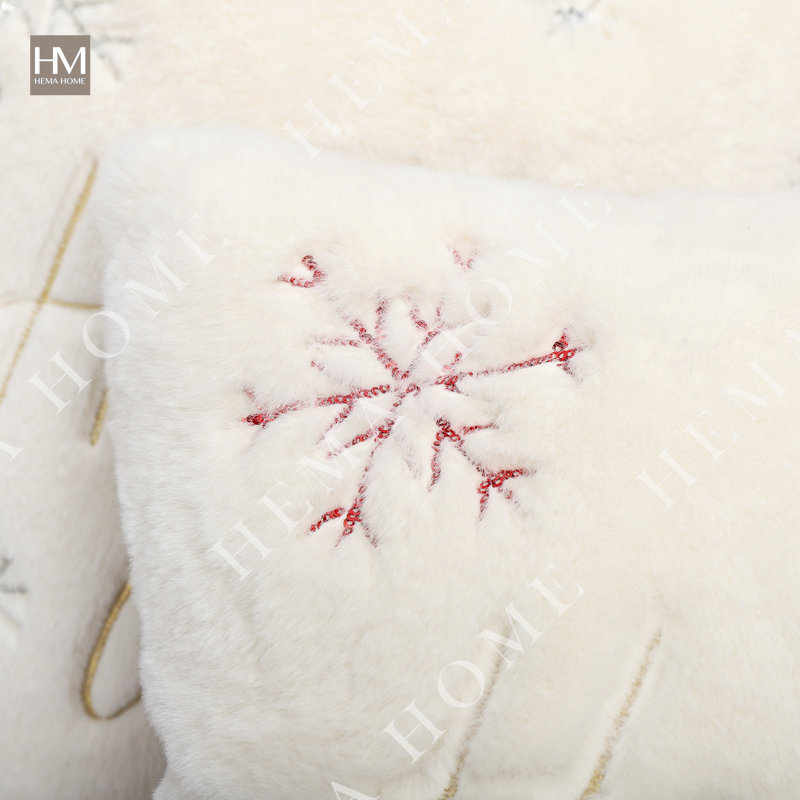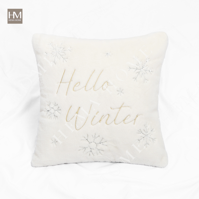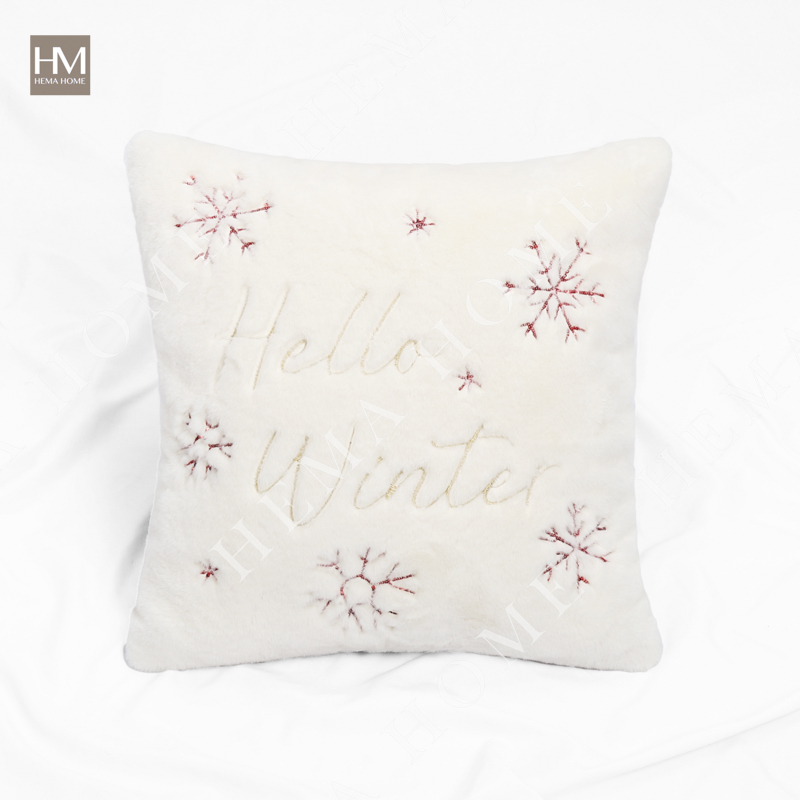 Embroidered Xmas Letter and Snowflake Pattern Faux Fur Cushion