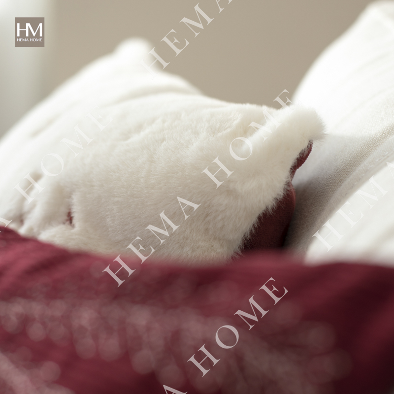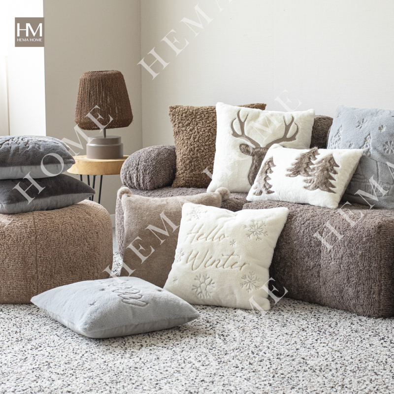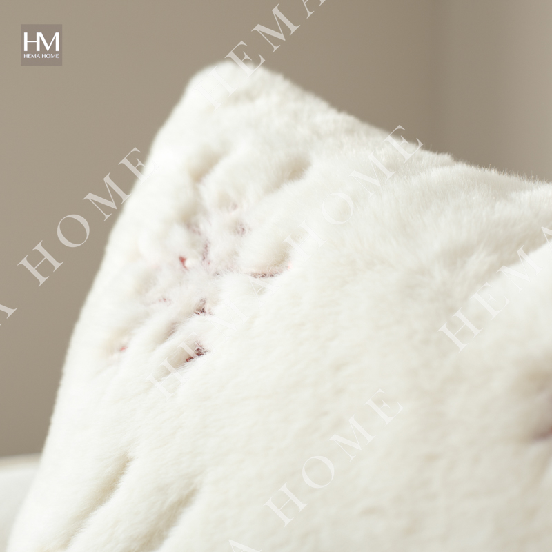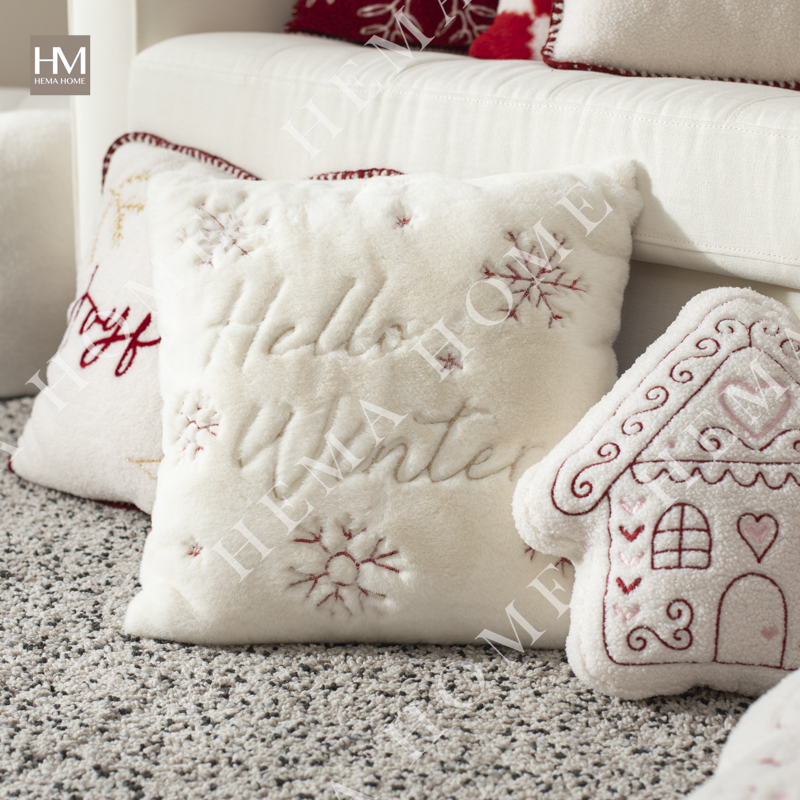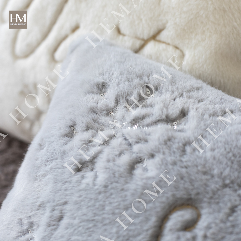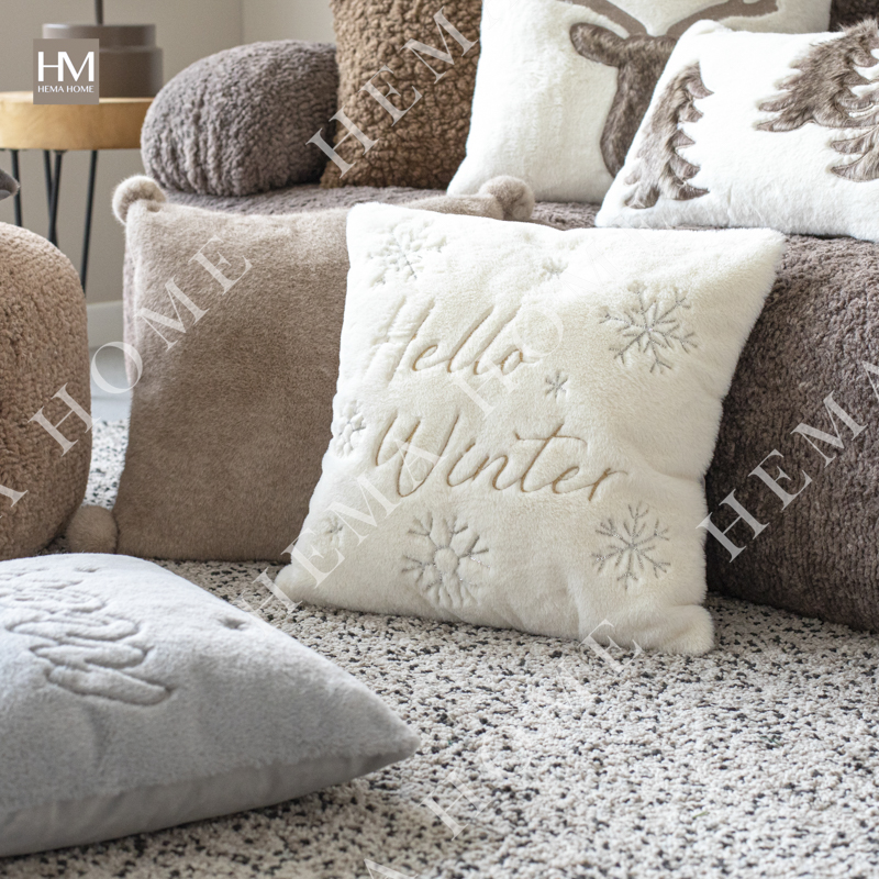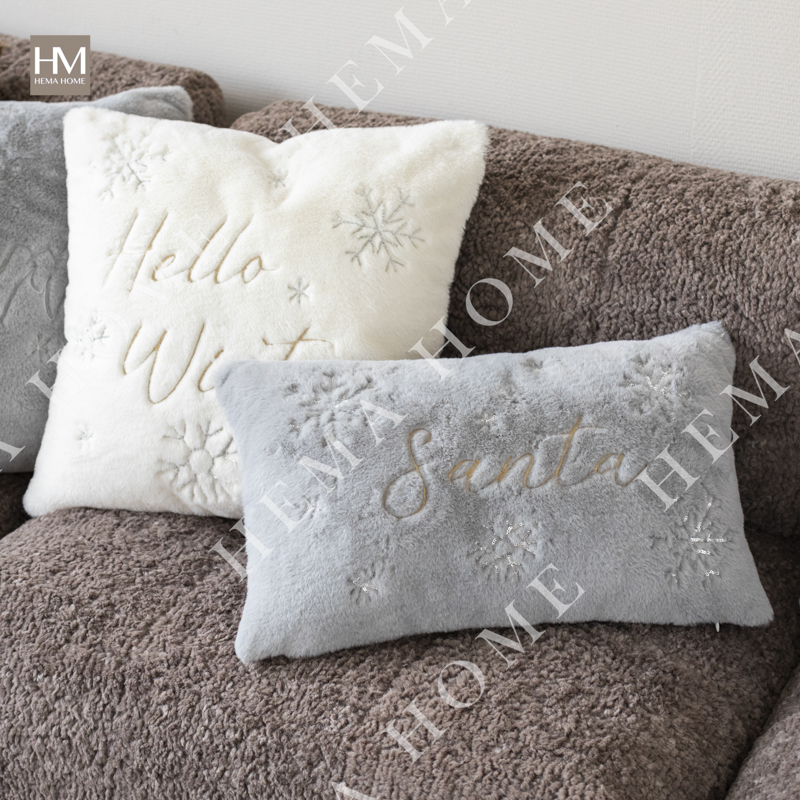 Embroidered Xmas Letter and Snowflake Pattern Faux Fur Cushion