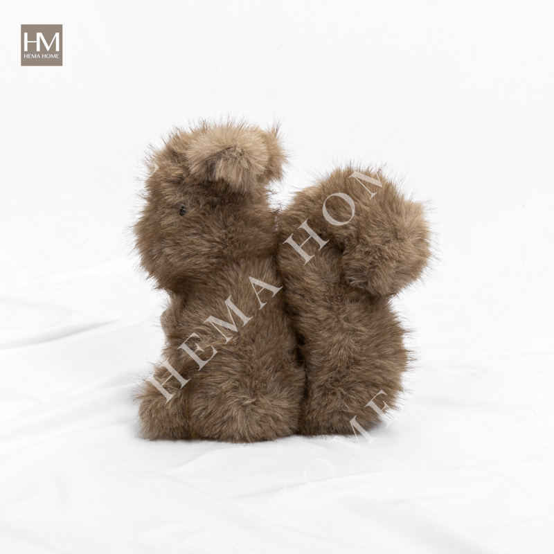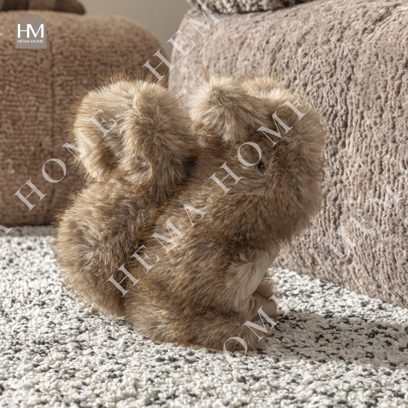 Squirrel Body is 556GSM faux fur fabric and belly is 220GSM velvet fabric.