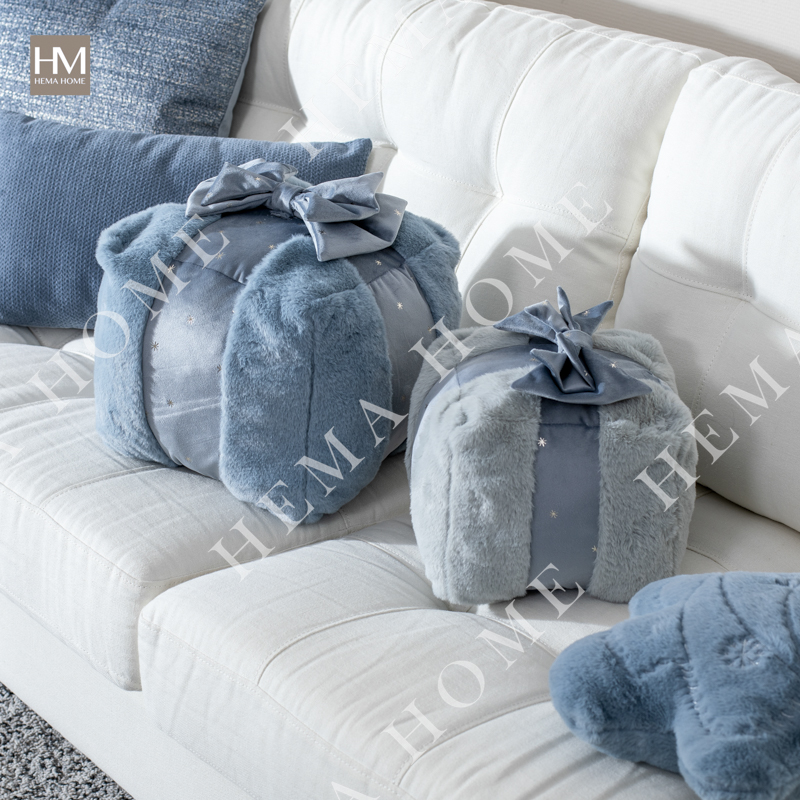 Faux Rabbit Fur Gift-Box Shaped Cushion