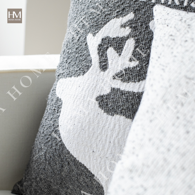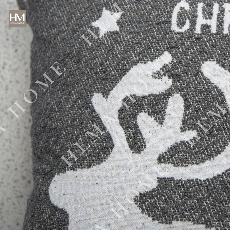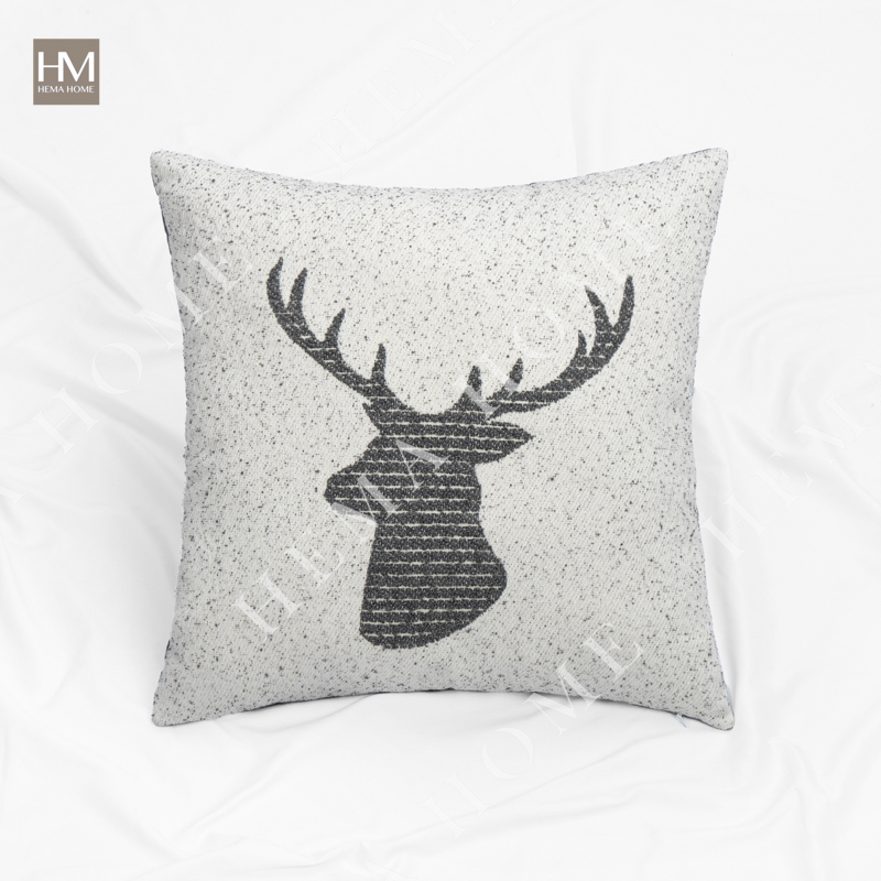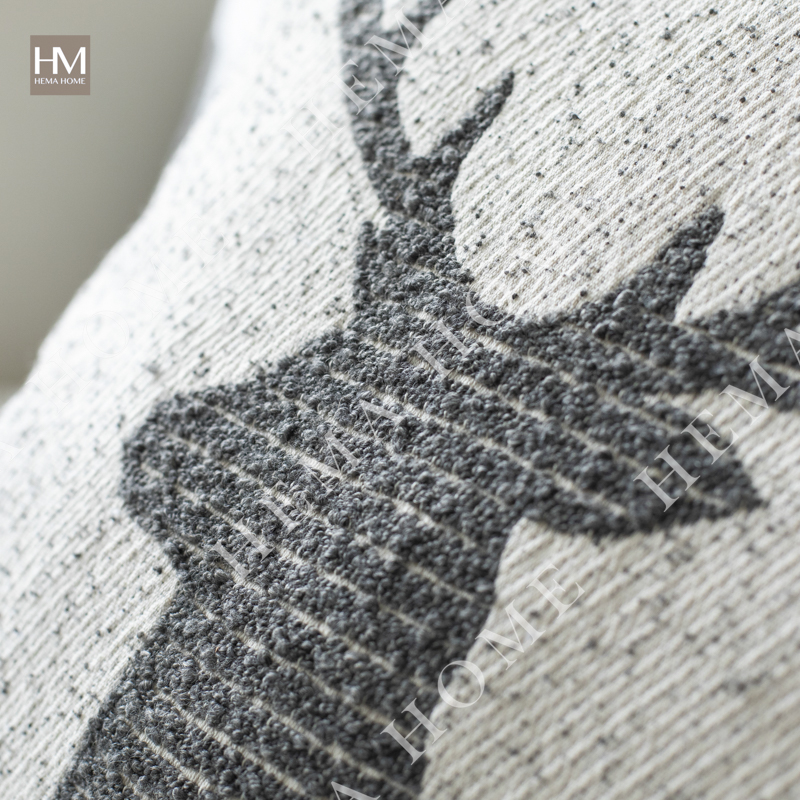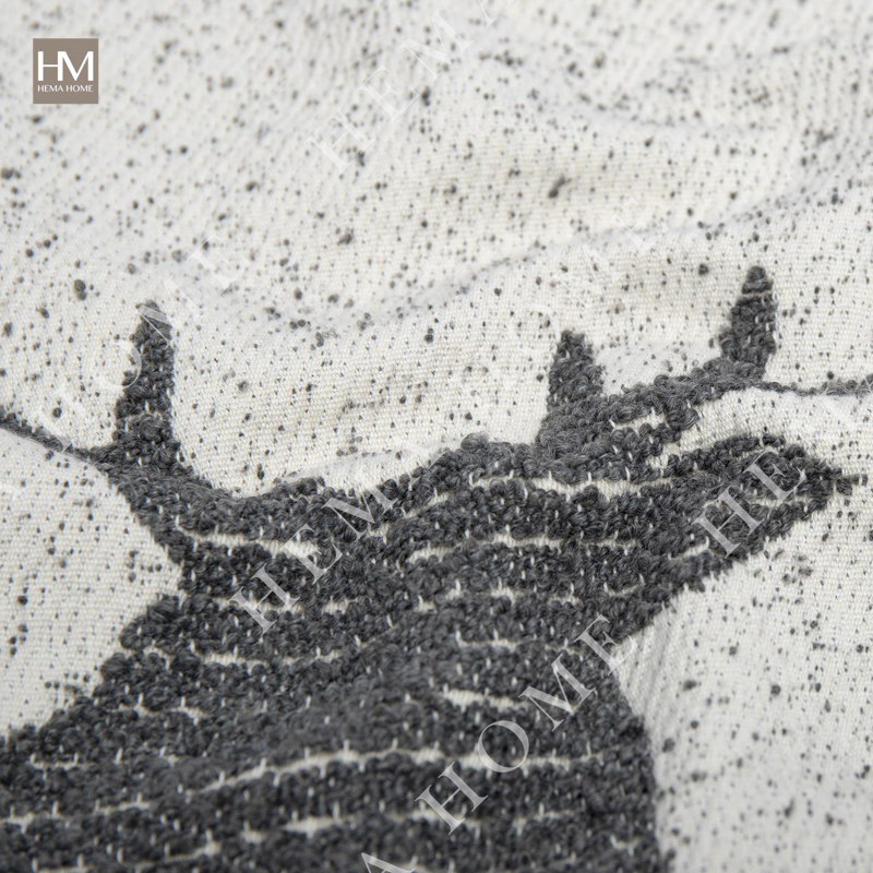 Front side is jacquard deer pattern 400GSM polyester fabric, back side is solid 200GSM cotton fabric.