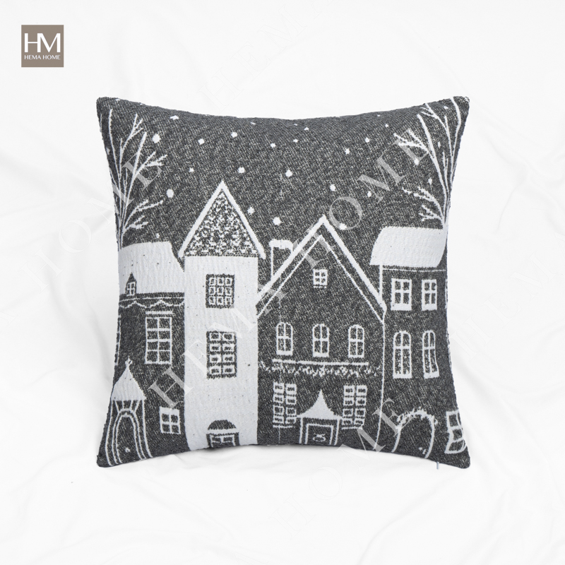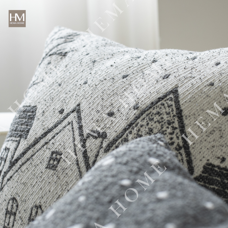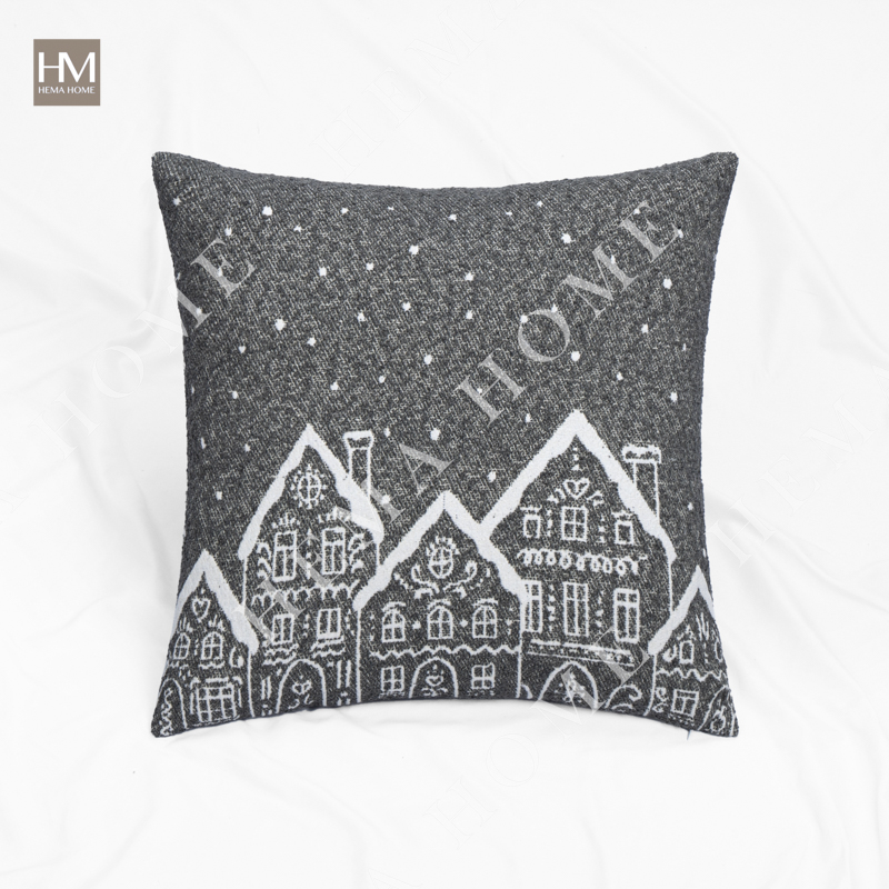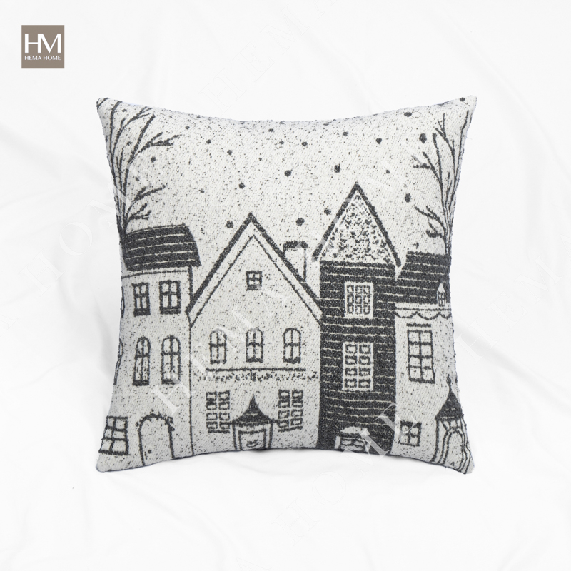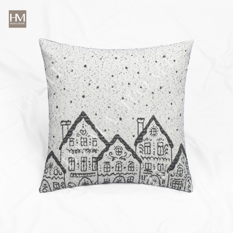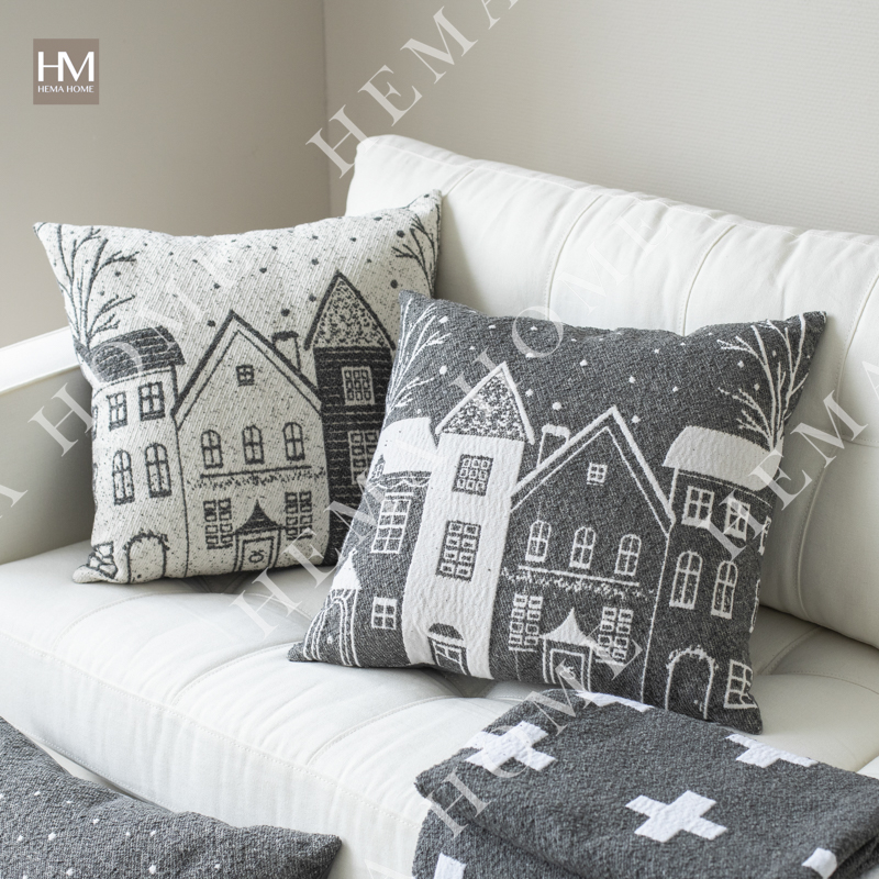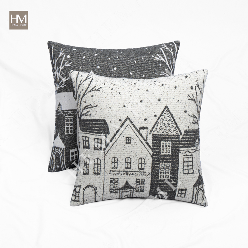 Front side is jacquard house pattern 400GSM polyester fabric, back side is solid 200GSM cotton fabric.