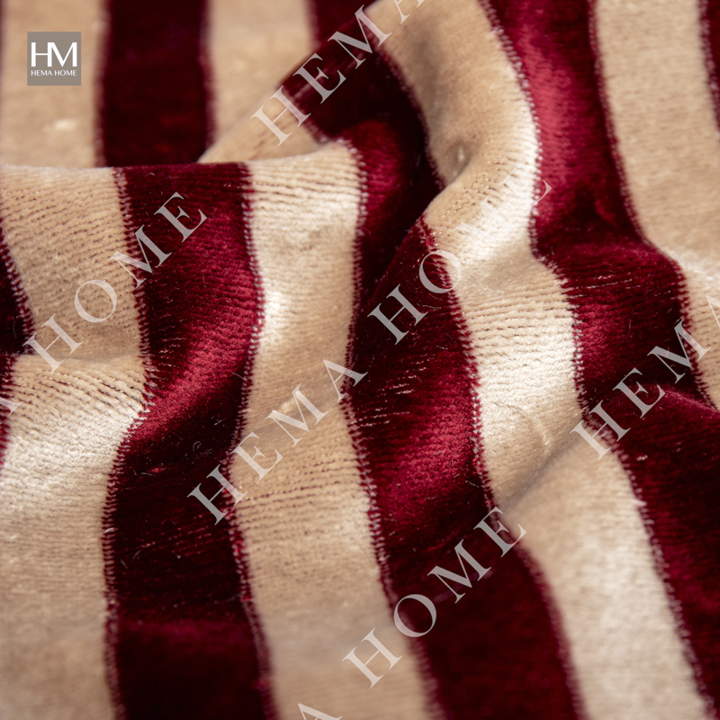 Front side is 520GSM jacquard velvet fabric, back side is velvet fabric.