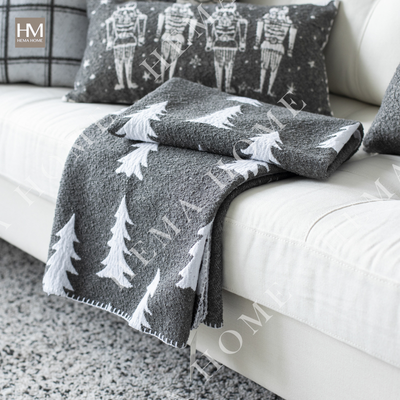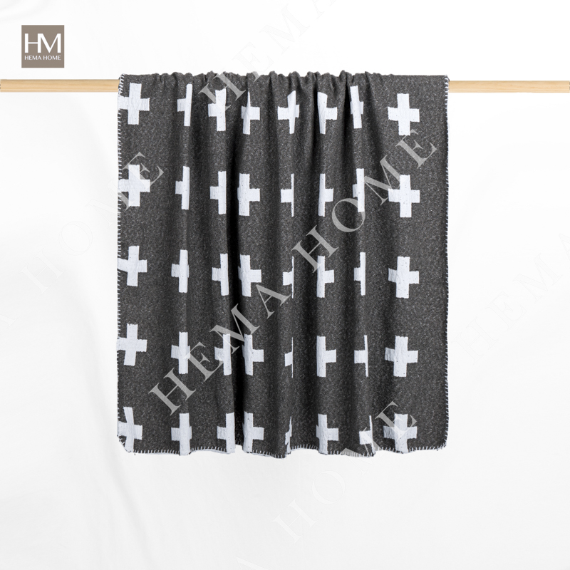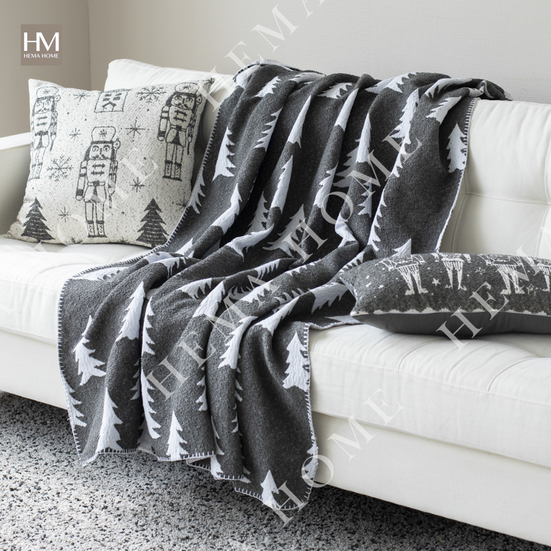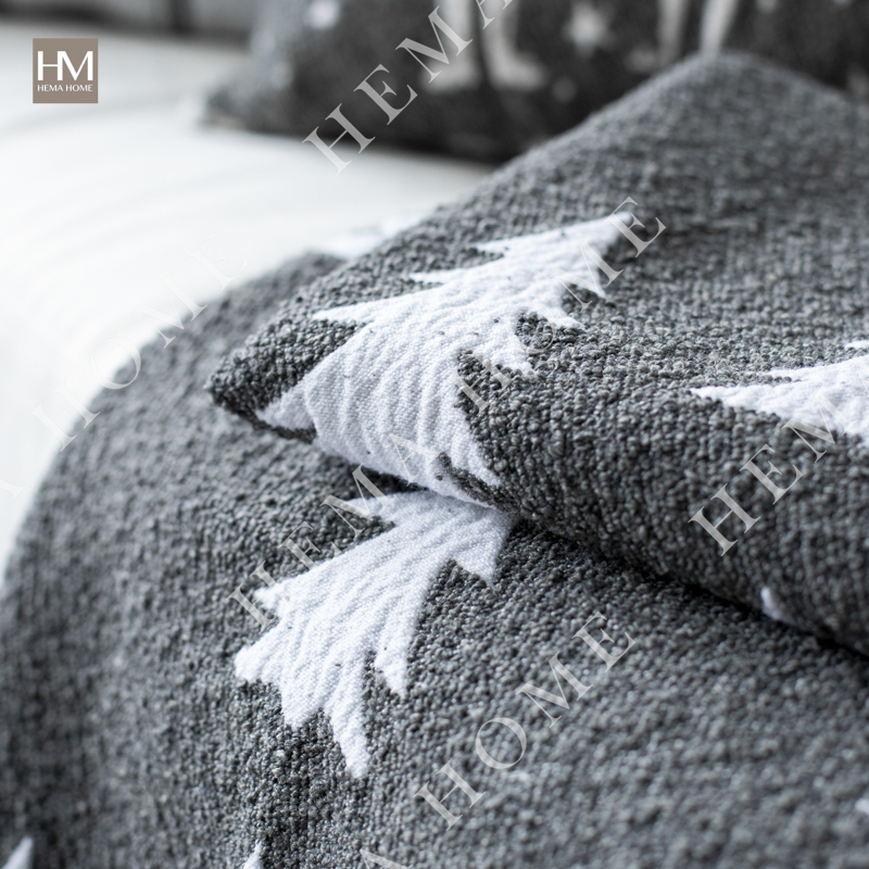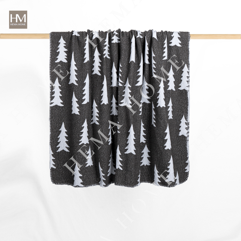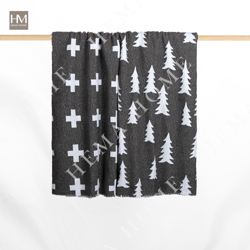 400GSM Jacquard tree/check/cross pattern pattern blanket with flanges.