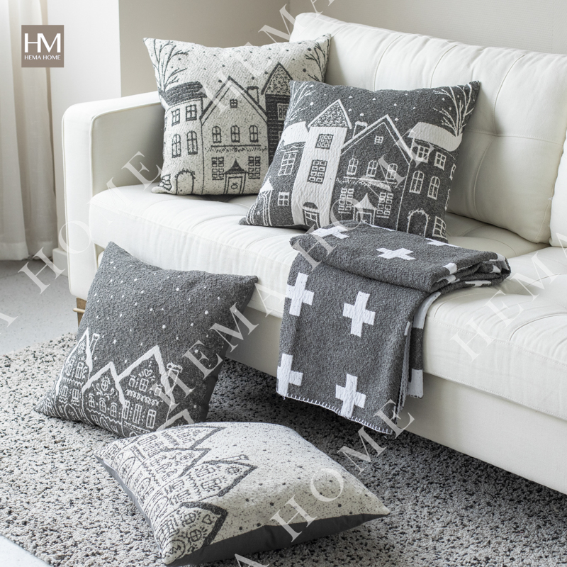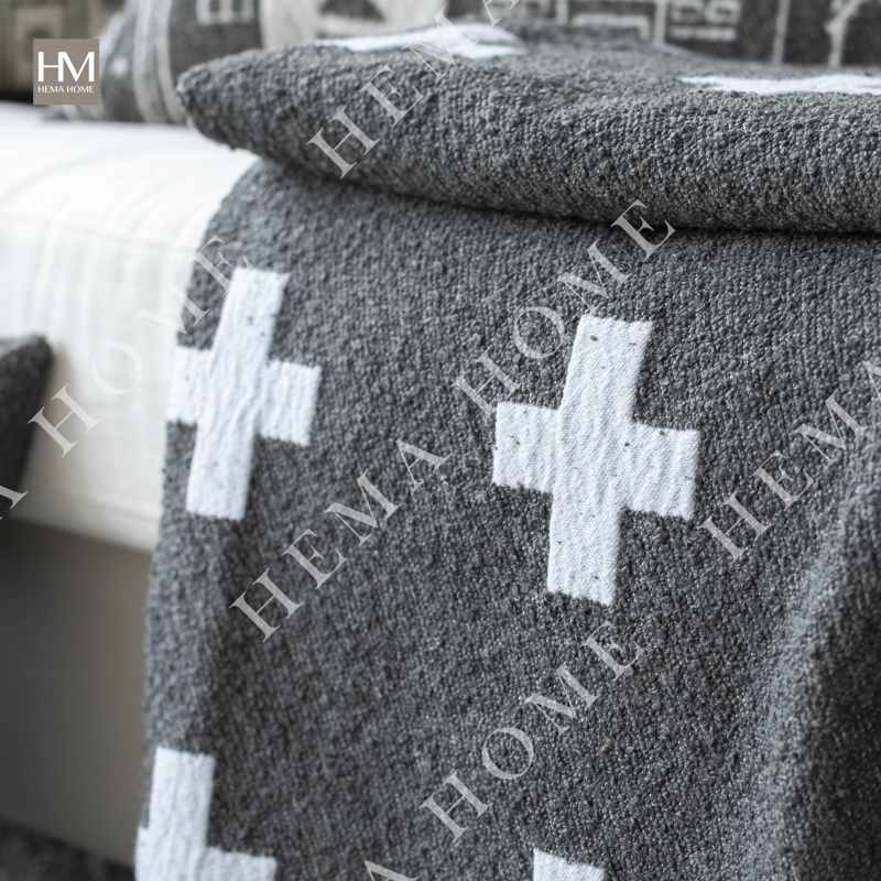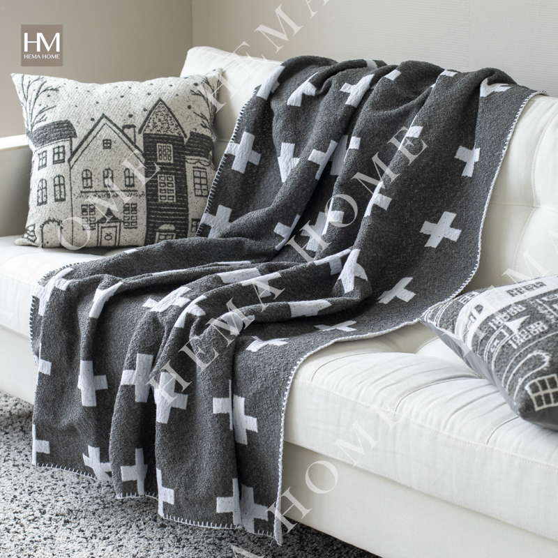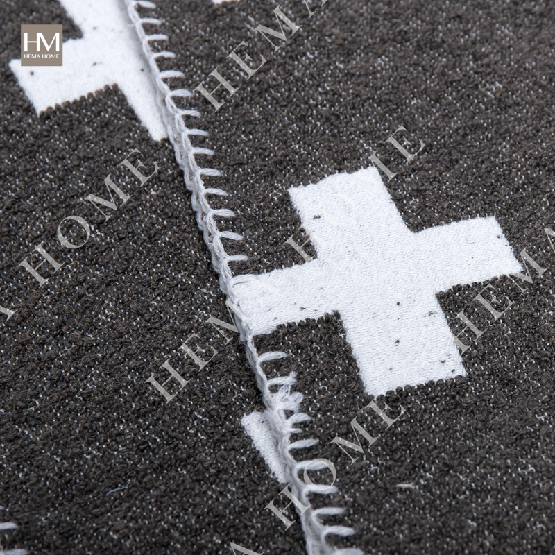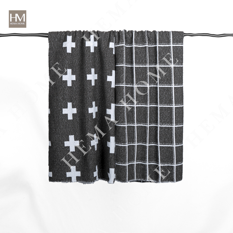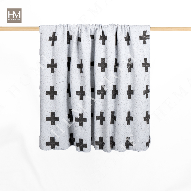 400GSM Jacquard tree/check/cross pattern pattern blanket with flanges.
