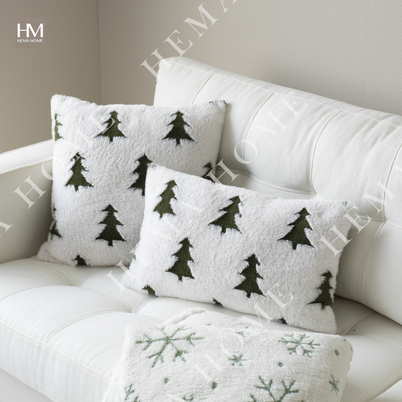 Jacquard Tree Pattern Faux Rabbit Fur Cushion