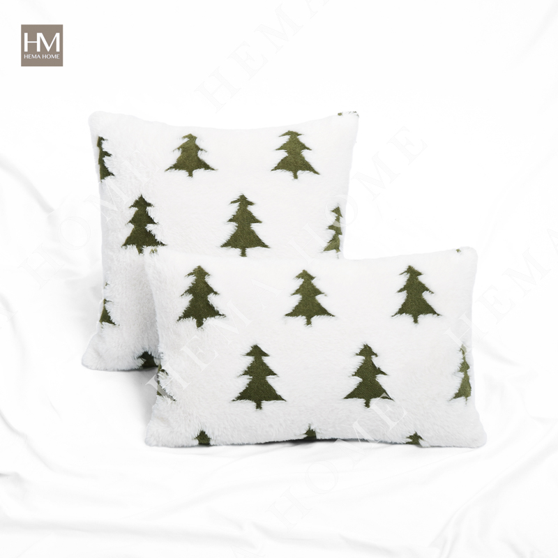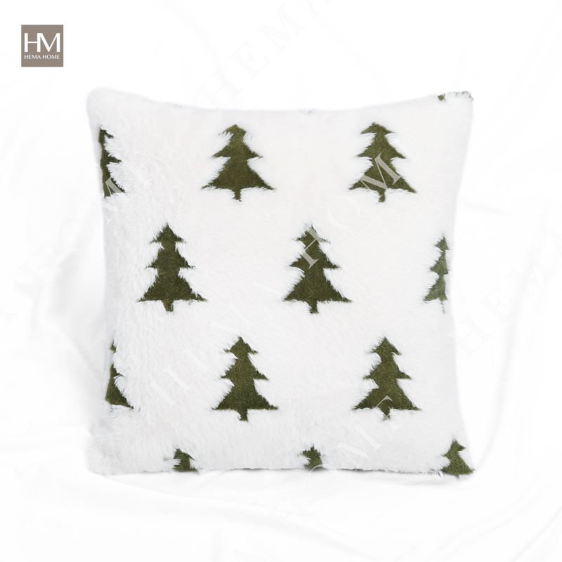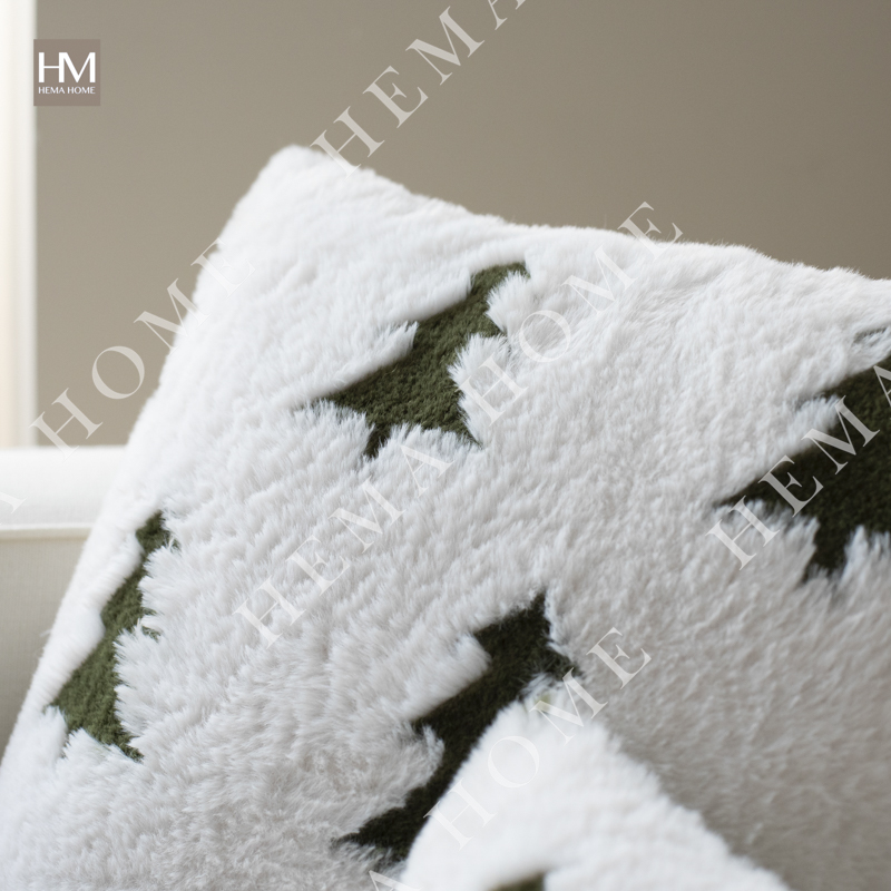 Jacquard Tree Pattern Faux Rabbit Fur Cushion