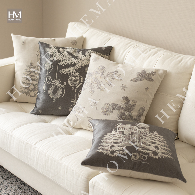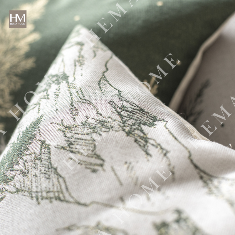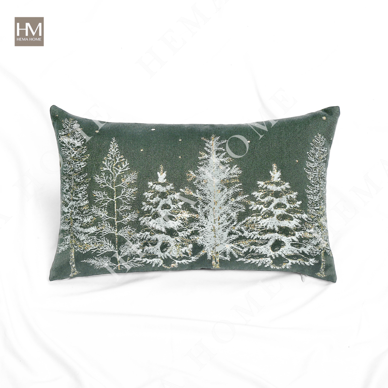 Mettalic Jacquard Xmas Tree Pattern Polyester Cushion with Poly-Cotton Back