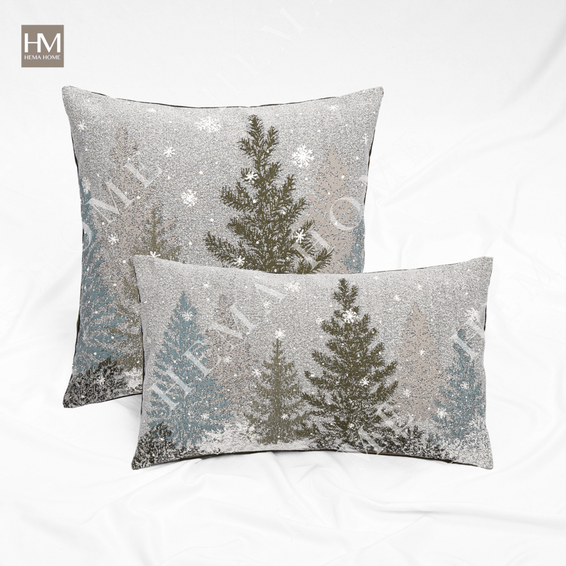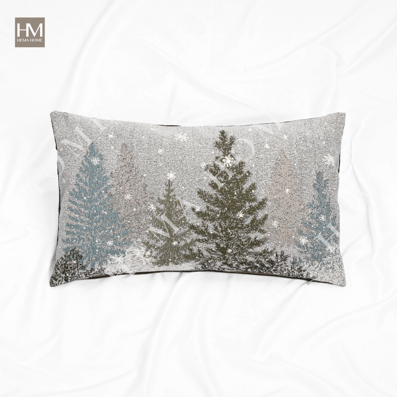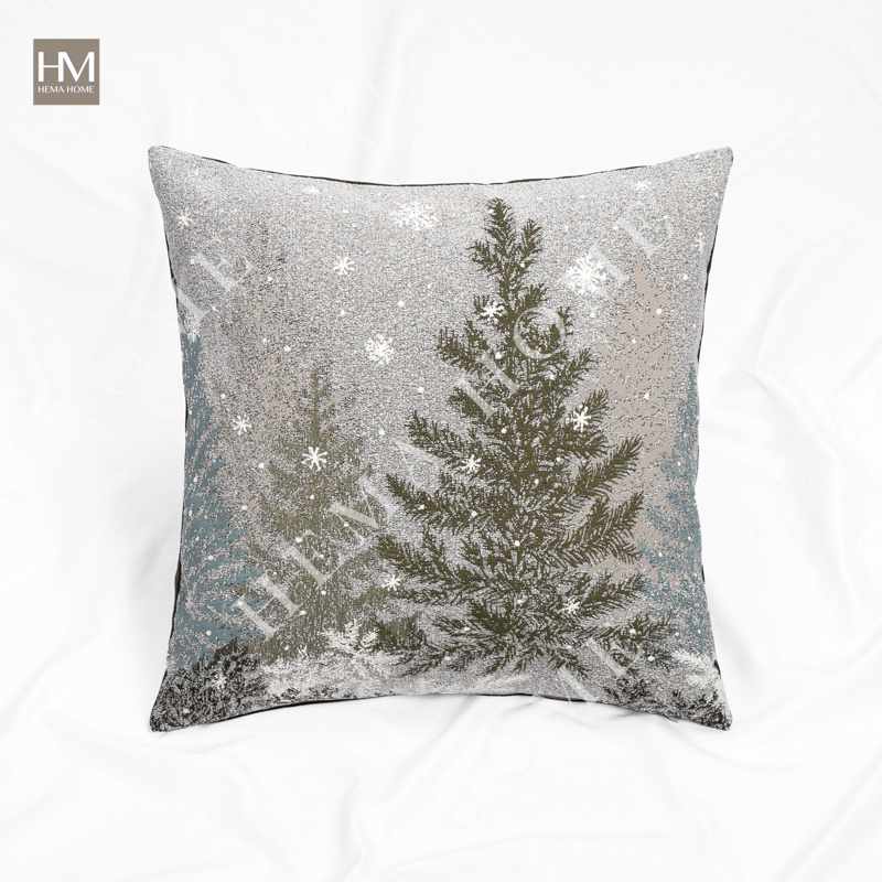 Jacquard Xmas Tree Pattern Polyester Cushion with Velvet Back