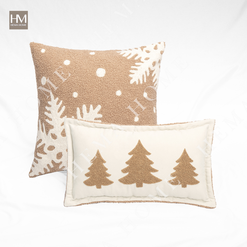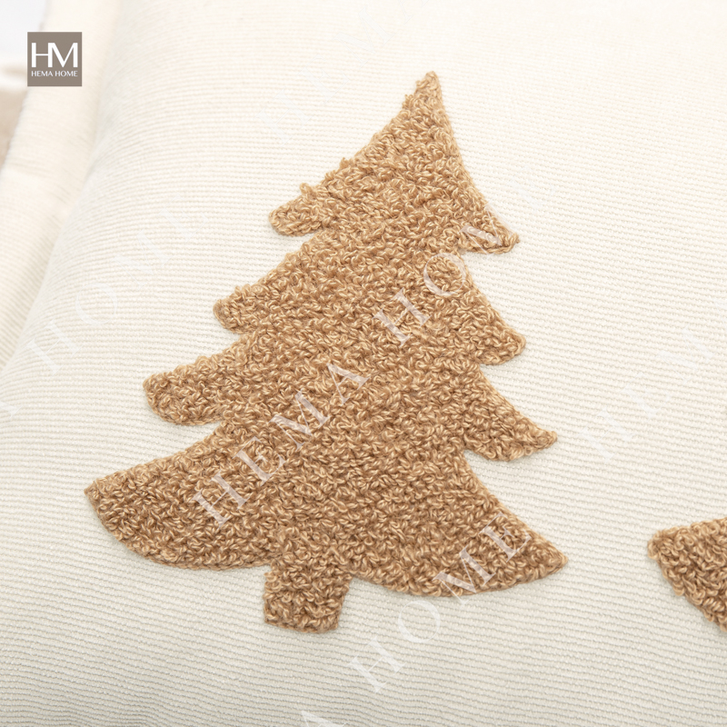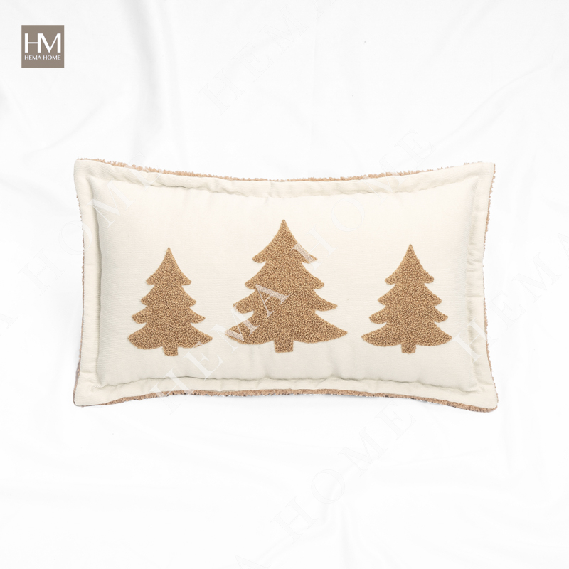 Loop Embroidered Trees Pattern Teddy Fur Cushion with Flanges