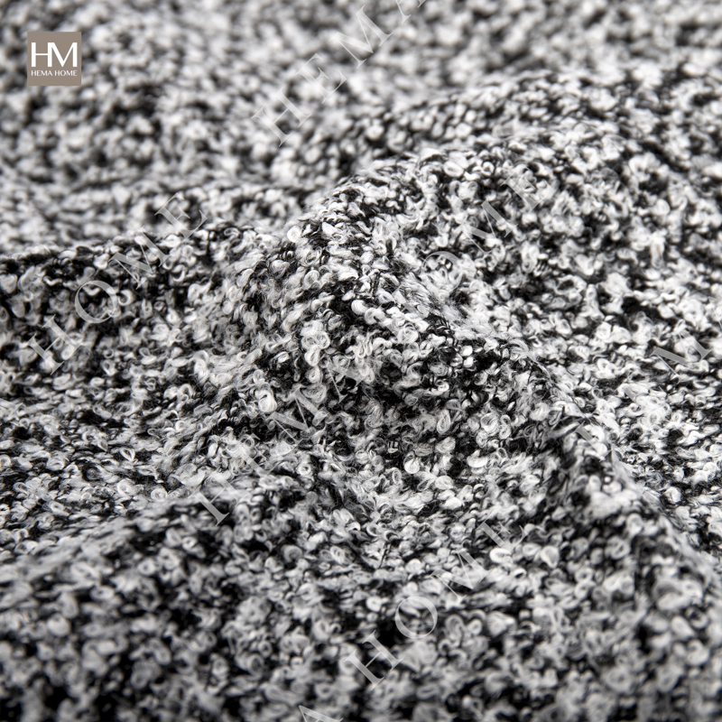 Front side is loop pattern polyester fabric, back side is solid color velvet fabric.