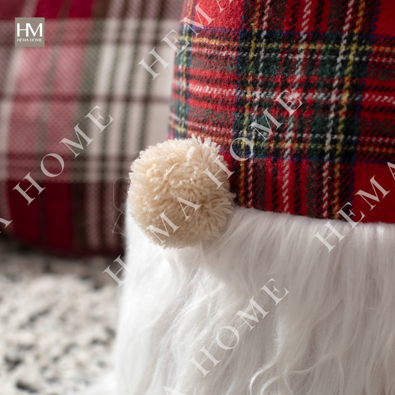 Patchwork Plaid Pattern Fabric and Teddy Fur Door Stop with Pompoms
