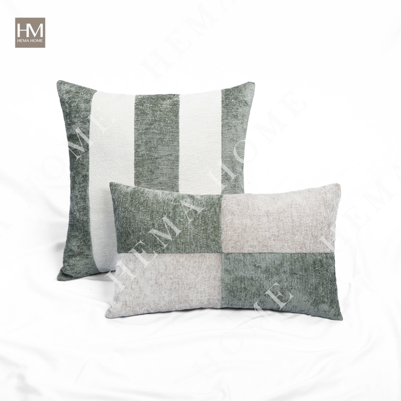 Patchwork Stripe Pattern Chenille Fabric Cushion