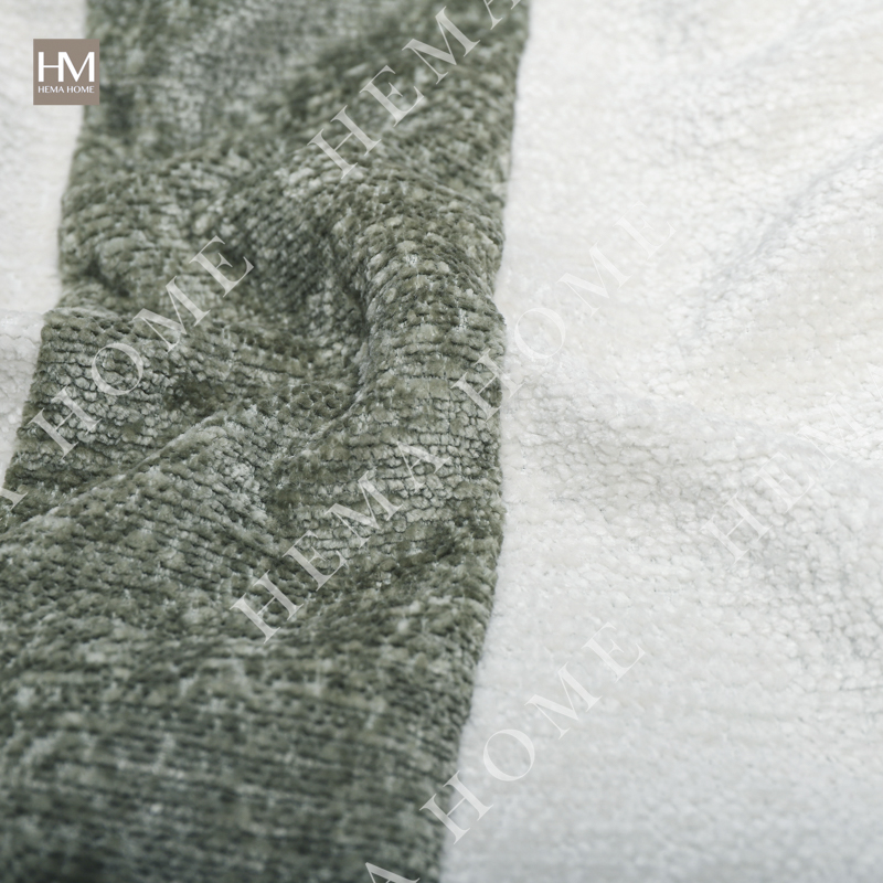 Front side is 345GSM chenille fabric with stripe/rectangular patchworked, back side is velvet fabric in solid color.