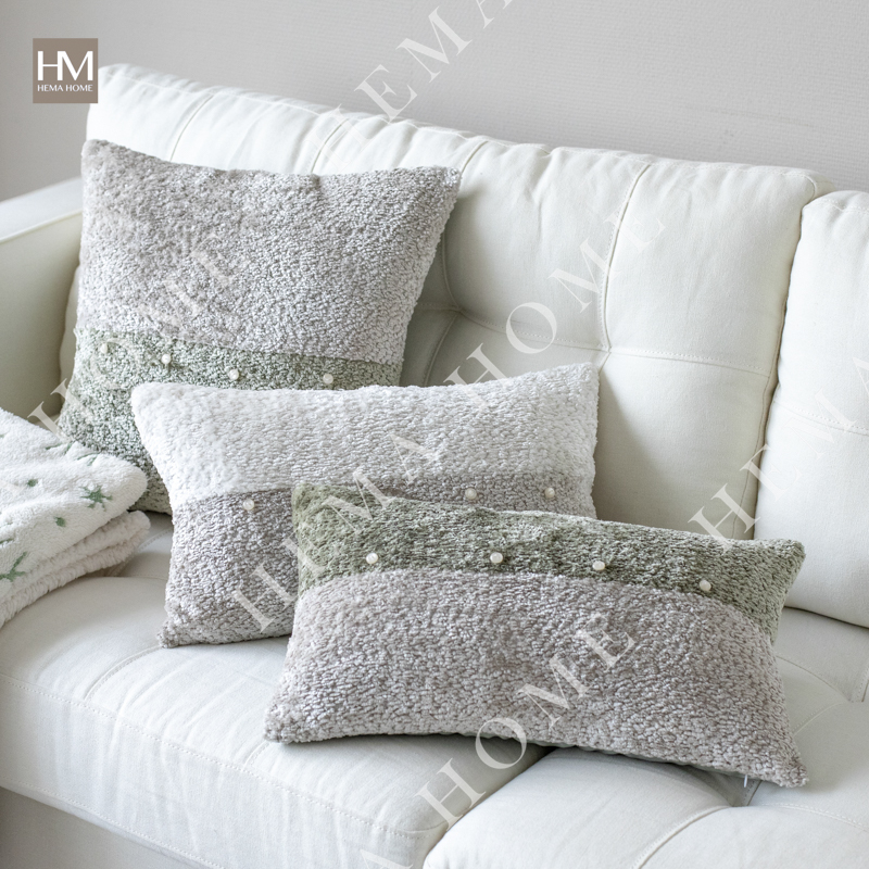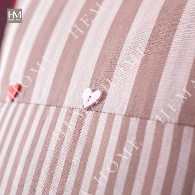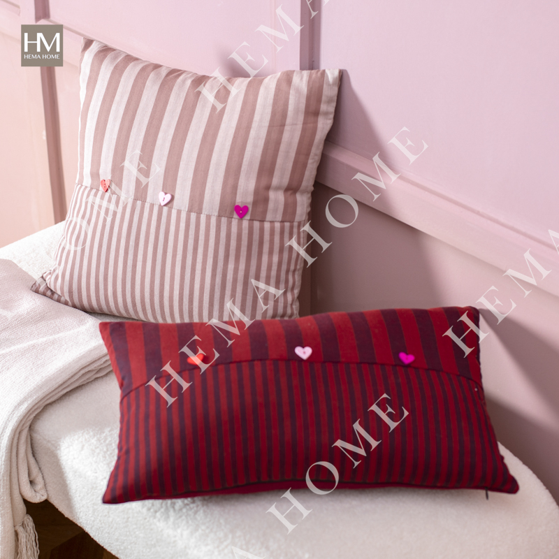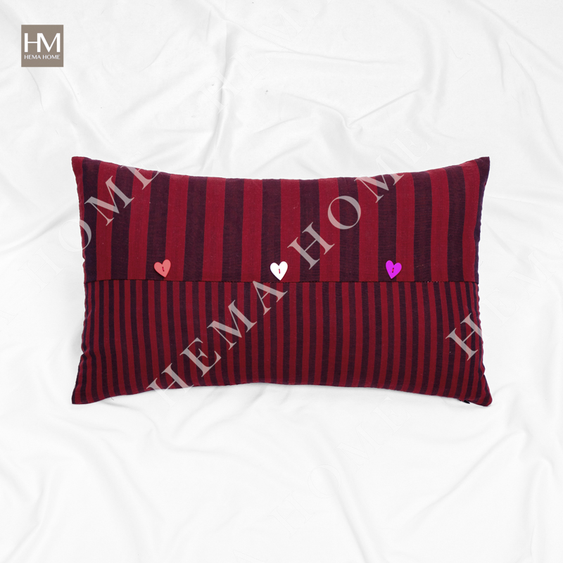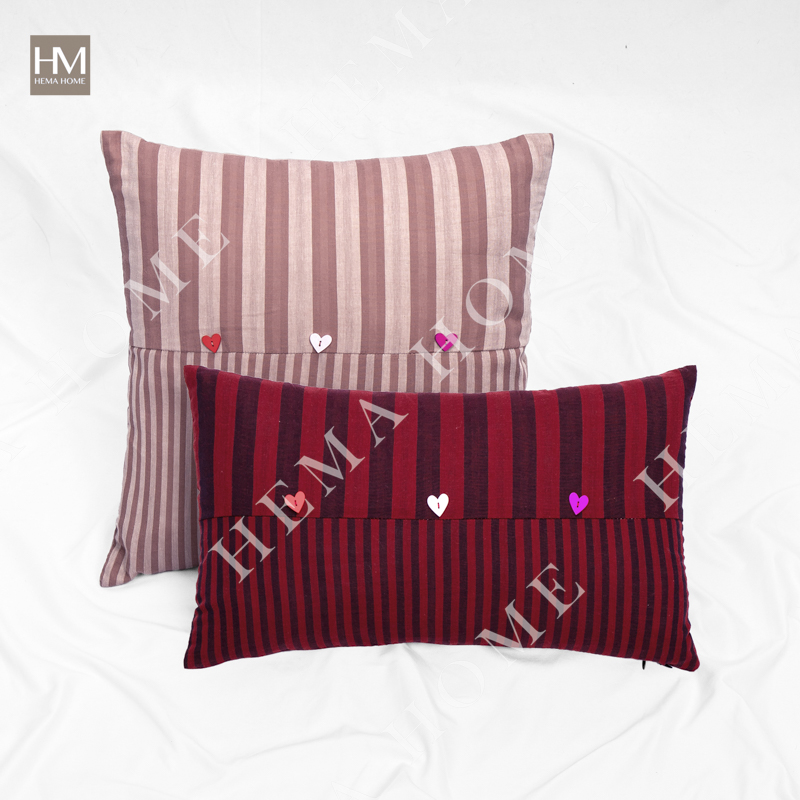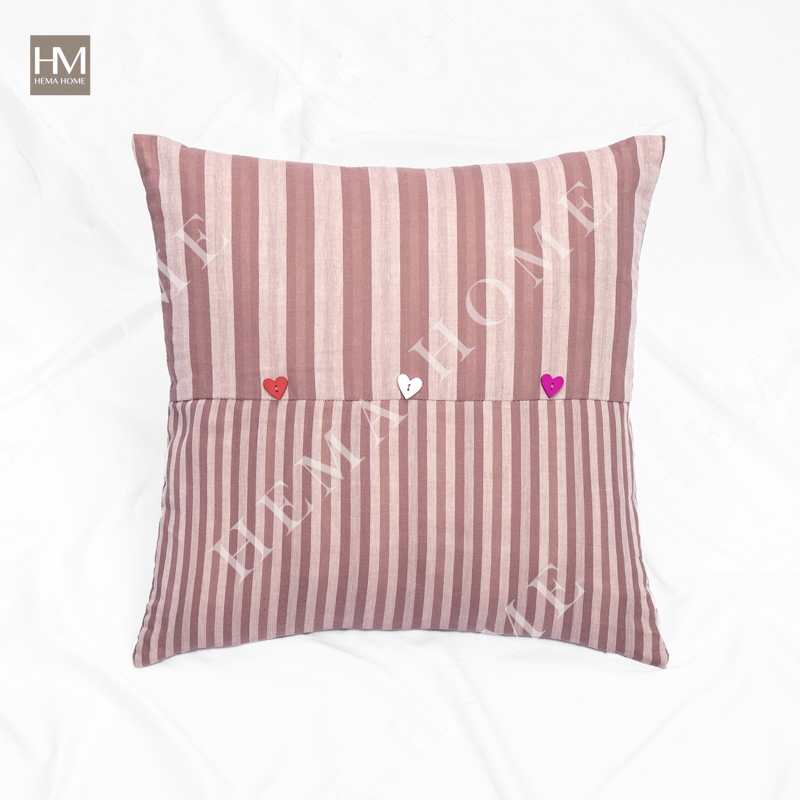 Patchwork Stripe Pattern Cotton Cushion with Heart Shape Wooden Buttons