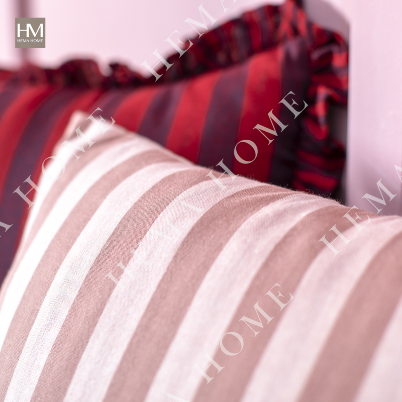 Front side is striped pattern cotton fabric,back side is polyester blended fabric.