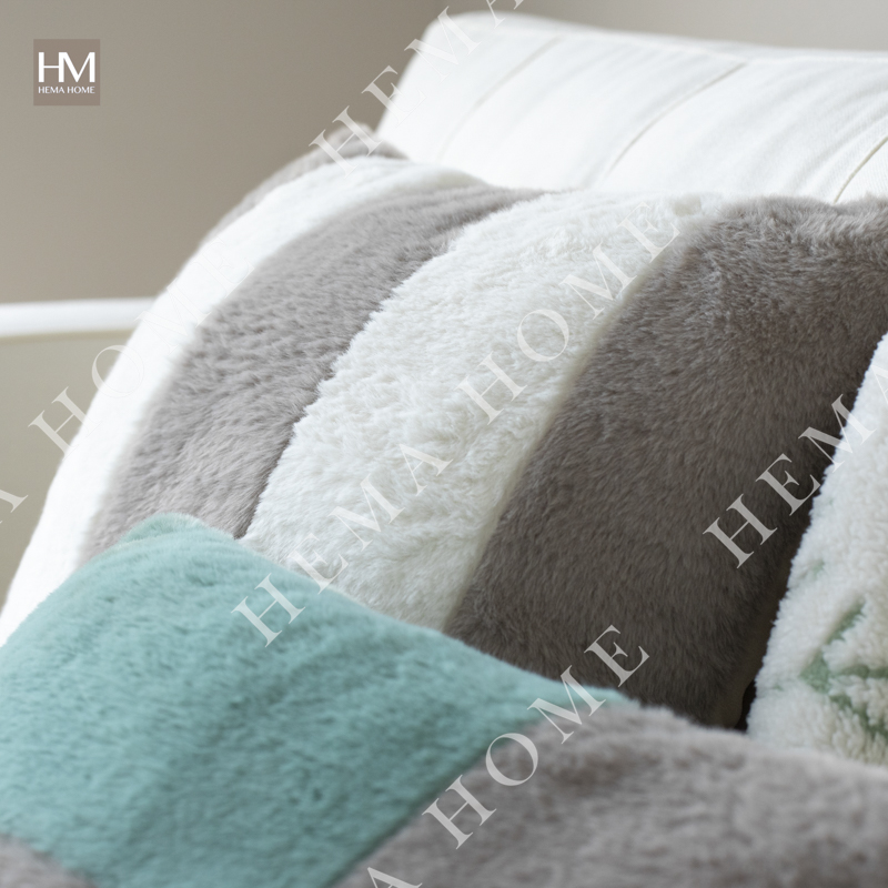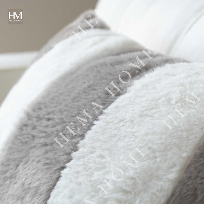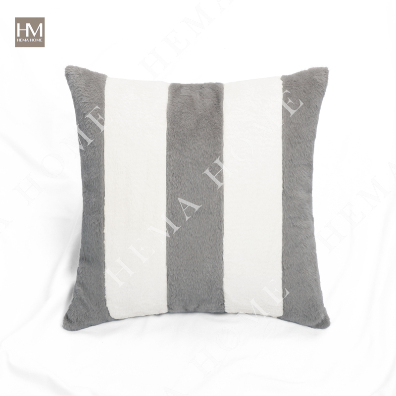Patchwork Stripe Pattern Rabbit Fur Fabric Cushion