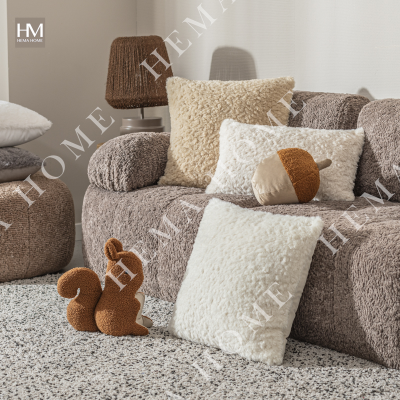 Patchwork Teddy Fur and Velvet Pinecone Shaped Cushion