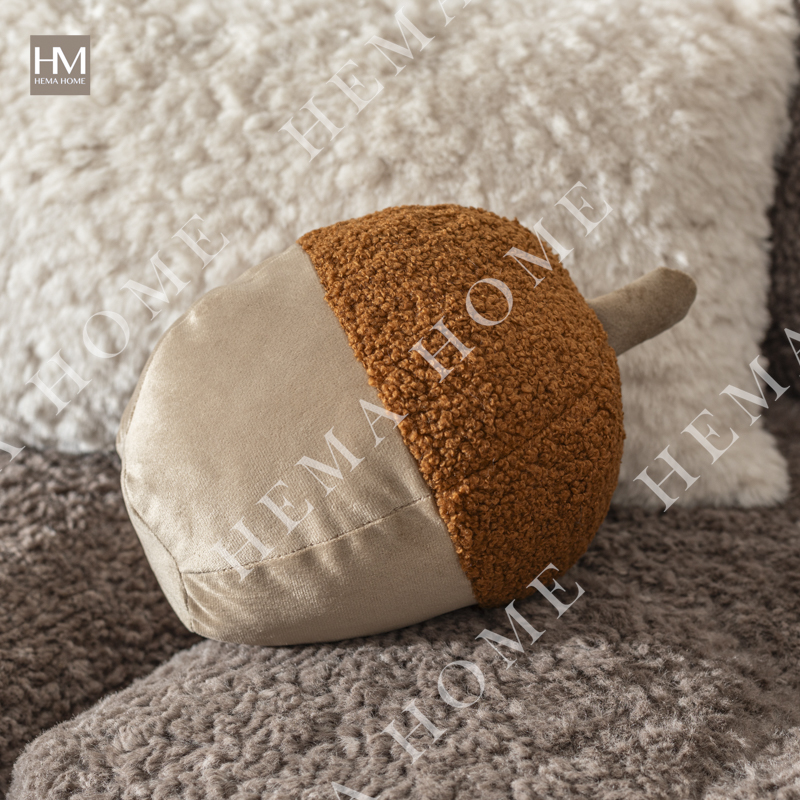 Patchwork Teddy Fur and Velvet Pinecone Shaped Cushion