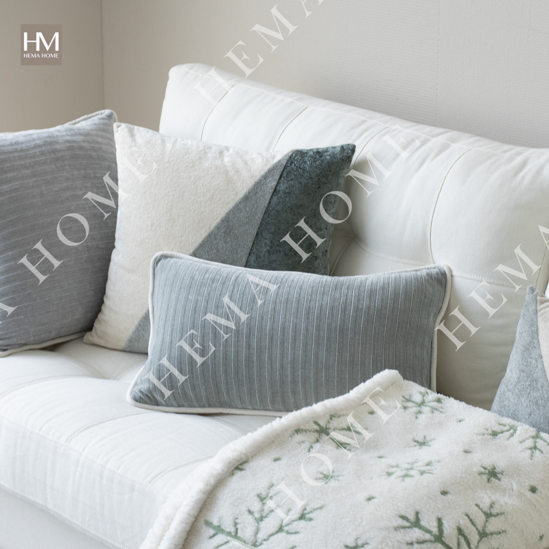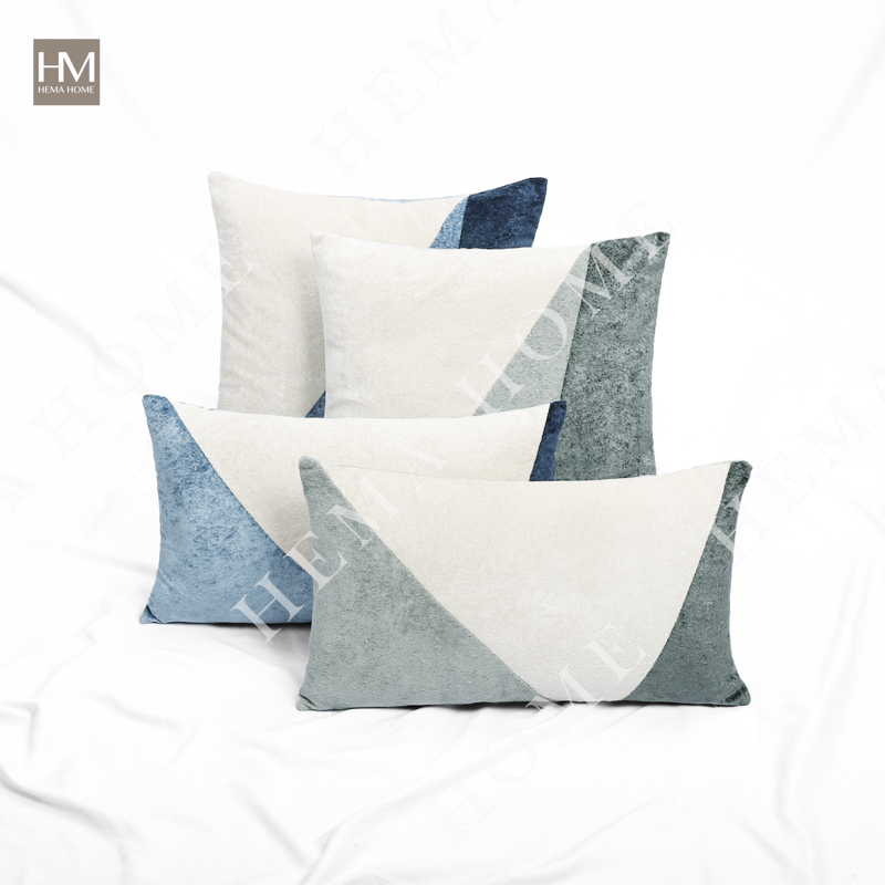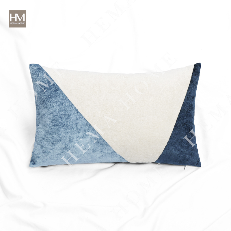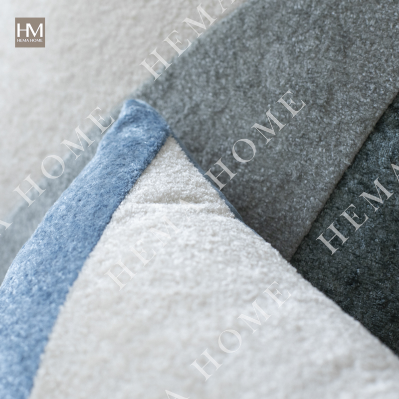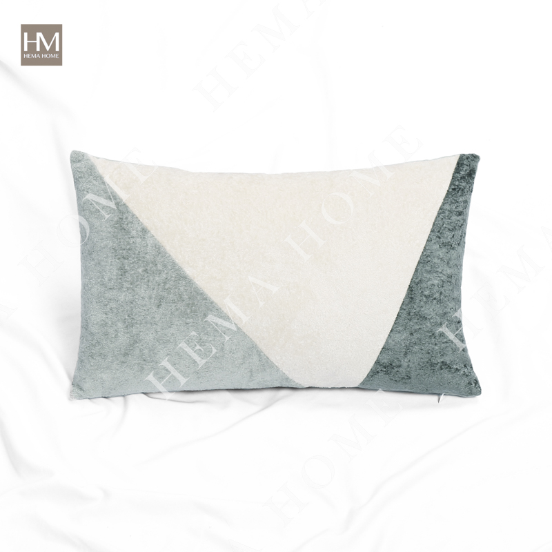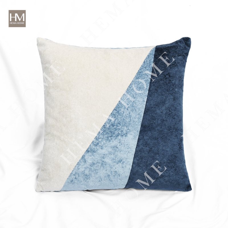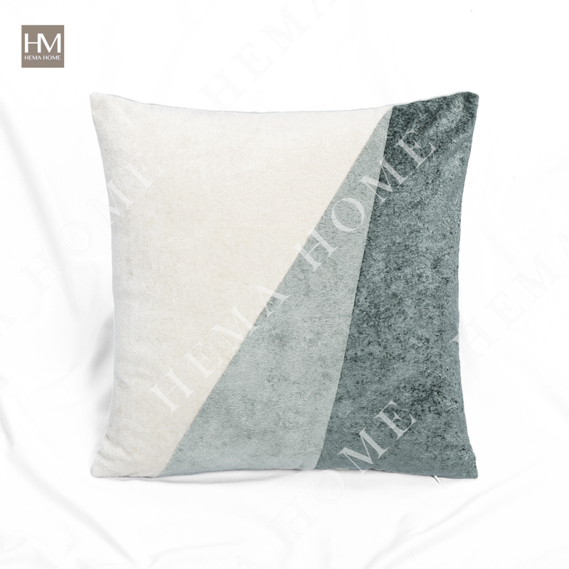 Front side is velvet fabric patched triangle pattern, back side is velvet fabric in solid color.